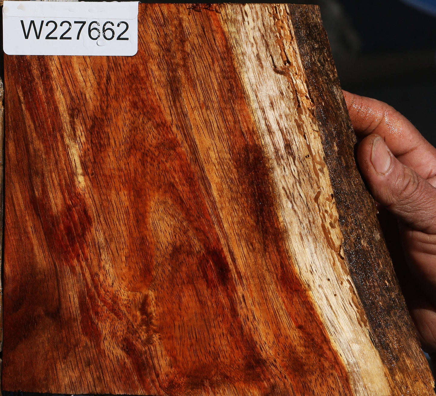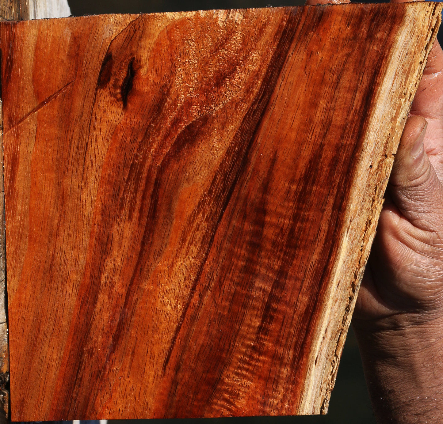 This vintage Hawaiian Koa lumber has warm, rich colors with unrivaled iridescence and curl. An occasional bug hole or check may be present. Some pieces may have pin holes in the sapwood or a 1/16" to 1/8" bow/twist that will lay flat with minimal pressure. This wonderful Koa is kiln dried, surfaced on two sides, and is ready to use. Beautiful curly figure will vary from piece to piece. This is some of the finest color and figure we’ve seen in years. It was saved from a stash that was cut in 1986. This Koa is a rare treasure! This piece has inclusions and bug holes. Please see pictures for details.