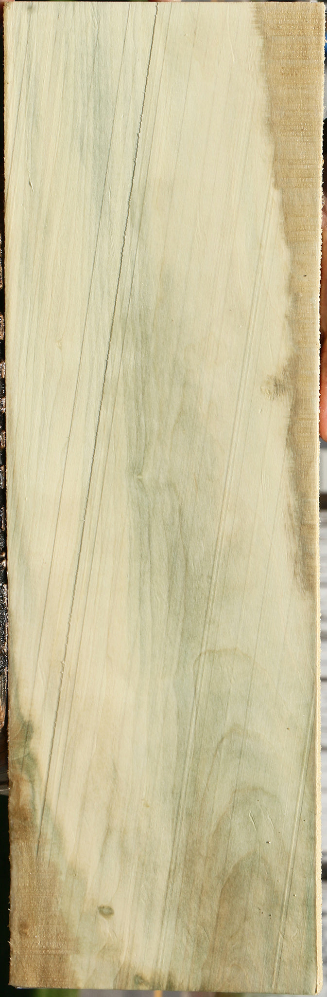 This beautiful, kiln dried Holly lumber has accents of blue/grey color that provide excellent color contrast for your woodworking projects! Colors include an array of pure white and blue/gray with black streaks. An occasional end check, a varying number of knots, and/or bow/twist up to 1/8" may be present. This lumber has been surfaced on two sides and is ready for woodworking accents, inlay projects, jewelry boxes, and more! This piece has planer skip and a partial rough edge. Please see pictures for details.