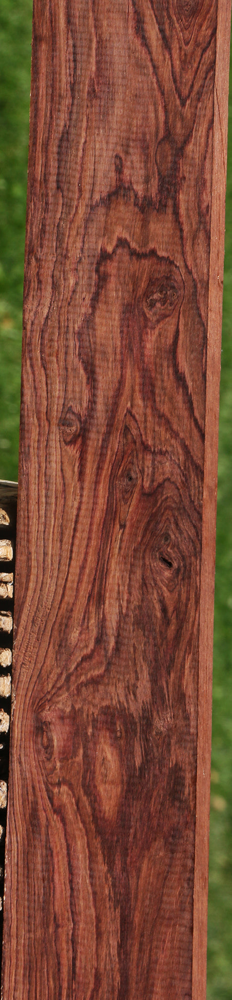 Honduras Rosewood is a centuries old classic Rosewood. Colors vary from violet purple colors to reddish hues. This dense and naturally oily wood produces a glass-like natural polish. It is increasingly difficult to obtain high quality, colorful lumber in this species. This wood cannot ship outside the USA. (Dalbergia stevensonii). Boards over 36" may have a slight 1/8" bow or twist. It is kiln dried, surfaced on two sides, and has been wax sealed on the ends. Take home your piece of this rare, clean, high quality Rosewood lumber. This piece has inclusions and a 1/8" bow. Please see pictures for details.