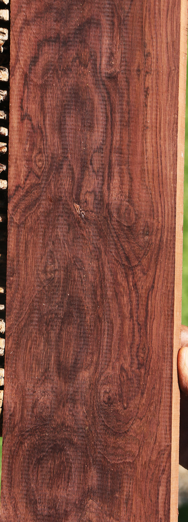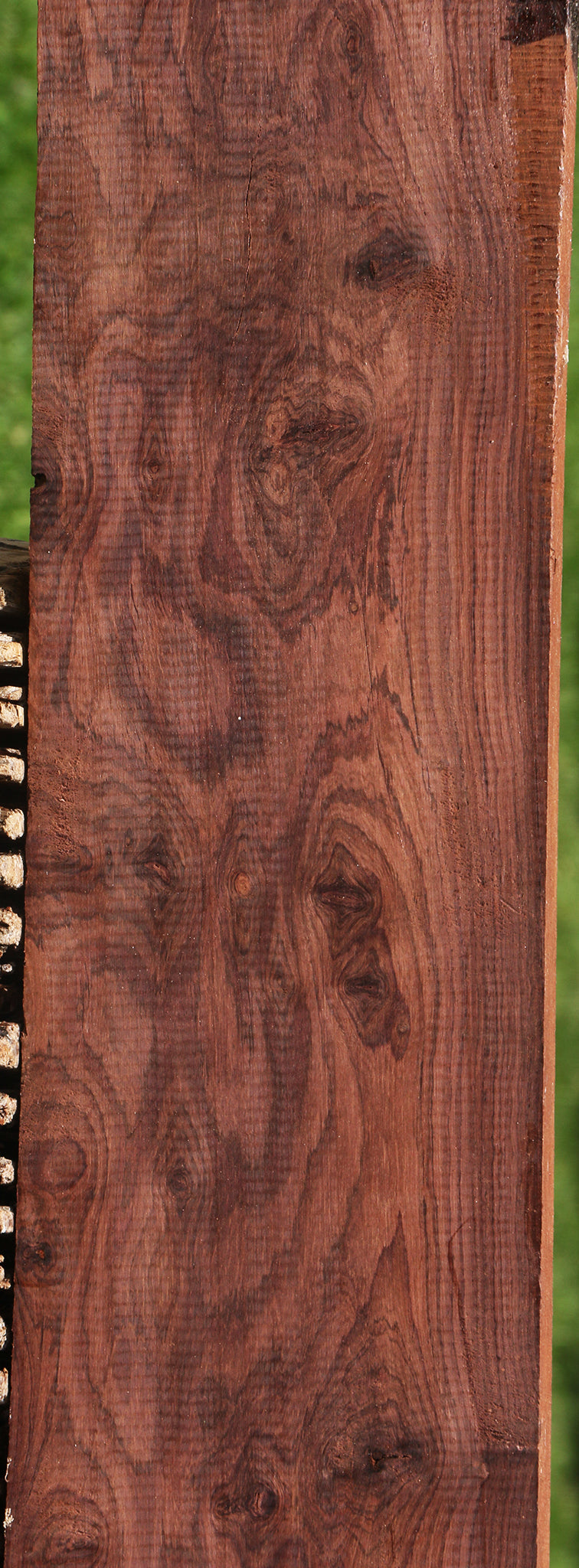 Honduras Rosewood is a centuries old classic Rosewood. Colors vary from violet purple colors to reddish hues. This dense and naturally oily wood produces a glass-like natural polish. It is increasingly difficult to obtain high quality, colorful lumber in this species. This wood cannot ship outside the USA. (Dalbergia stevensonii). Boards over 36" may have a slight 1/8" bow or twist. It is kiln dried, surfaced on two sides, and has been wax sealed on the ends. Take home your piece of this rare, clean, high quality Rosewood lumber. This piece has inclusions and a 1/8" bow. Please see pictures for details.
