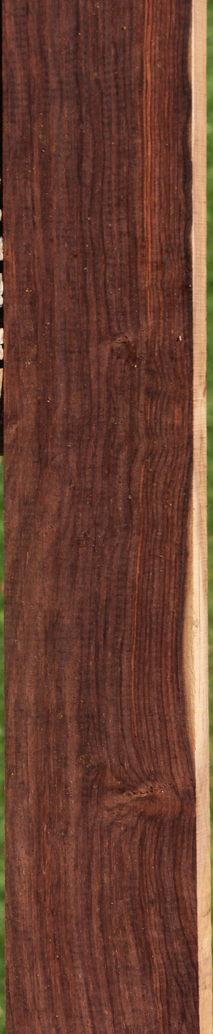 Honduras Rosewood is a centuries old classic Rosewood. Colors vary from violet purple colors to reddish hues. This dense and naturally oily wood produces a glass-like natural polish. It is increasingly difficult to obtain high quality, colorful lumber in this species. This wood cannot ship outside the USA. (Dalbergia stevensonii). Boards over 36" may have a slight 1/8" bow or twist. It is kiln dried, surfaced on two sides, and has been wax sealed on the ends. Take home your piece of this rare, clean, high quality Rosewood lumber. This piece has bug holes and edge splits. Please see pictures for details.