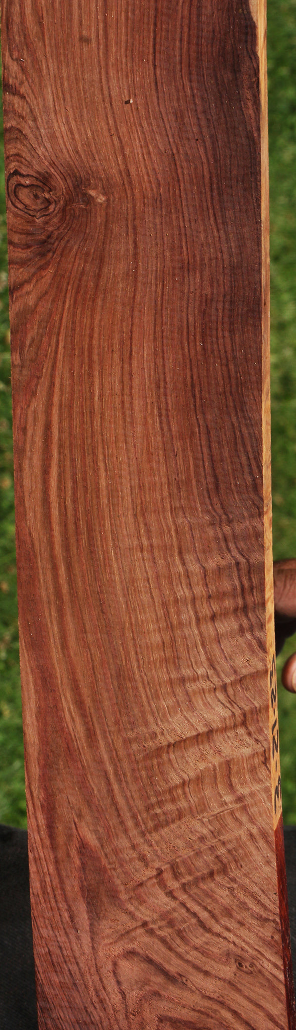 Honduras Rosewood is a centuries old classic Rosewood. Colors vary from violet purple colors to reddish hues. This dense and naturally oily wood produces a glass-like natural polish. It is increasingly difficult to obtain high quality, colorful lumber in this species. This wood cannot ship outside the USA. (Dalbergia stevensonii). Boards over 36" may have a slight 1/8" bow or twist. It is kiln dried, surfaced on two sides, and has been wax sealed on the ends. Take home your piece of this rare, clean, high quality Rosewood lumber. This piece has inclusions and a 1/16" bow. Please see pictures for details.