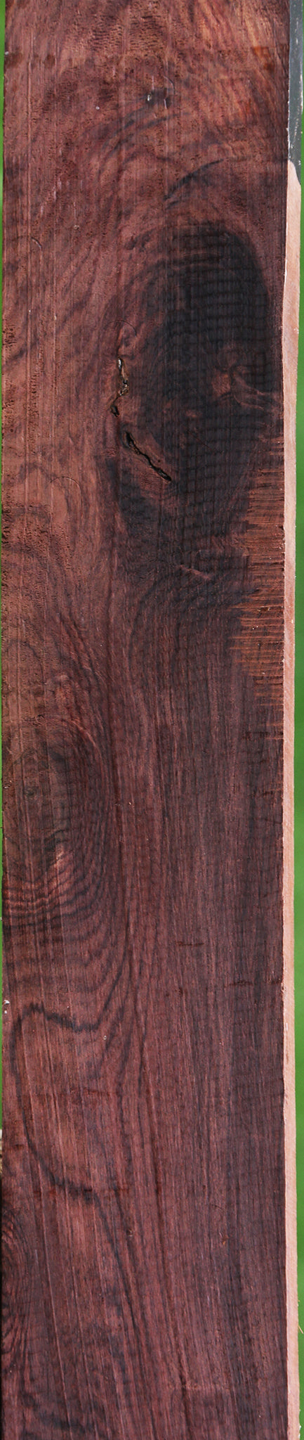 Honduras Rosewood is a centuries old classic Rosewood. Colors vary from violet purple colors to reddish hues. This dense and naturally oily wood produces a glass-like natural polish. It is increasingly difficult to obtain high quality, colorful lumber in this species. This wood cannot ship outside the USA. (Dalbergia stevensonii). Boards over 36" may have a slight 1/8" bow or twist. It is kiln dried, surfaced on two sides, and has been wax sealed on the ends. Take home your piece of this rare, clean, high quality Rosewood lumber. This piece has inclusions. Please see pictures for details.