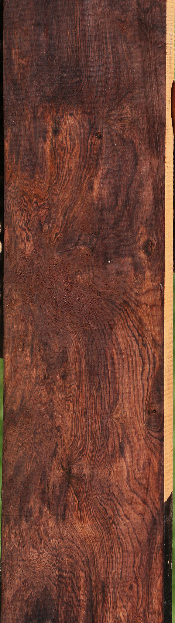 Honduras Rosewood is a centuries old classic Rosewood. Colors vary from violet purple colors to reddish hues. This dense and naturally oily wood produces a glass-like natural polish. It is increasingly difficult to obtain high quality, colorful lumber in this species. This wood cannot ship outside the USA. (Dalbergia stevensonii). Boards over 36" may have a slight 1/8" bow or twist. It is kiln dried, surfaced on two sides, and has been wax sealed on the ends. Take home your piece of this rare, clean, high quality Rosewood lumber. This piece has inclusions and an end split. Please see pictures for details.