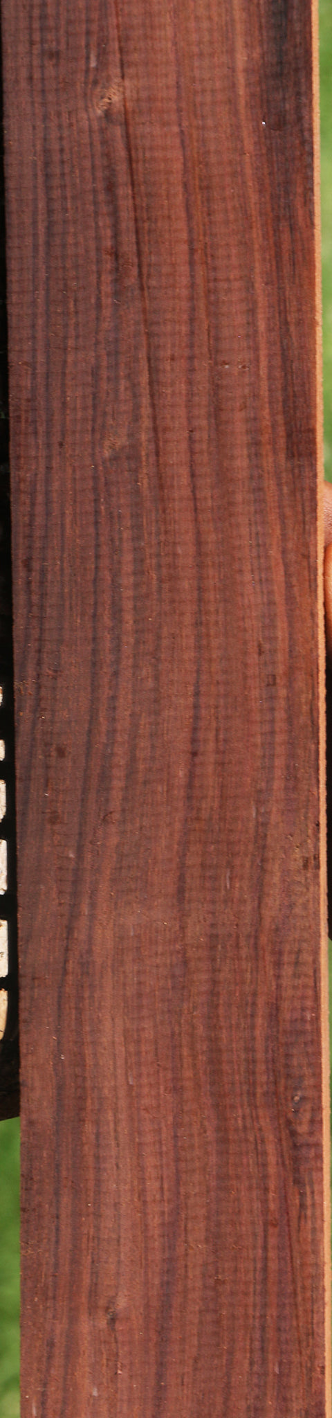 Honduras Rosewood is a centuries old classic Rosewood. Colors vary from violet purple colors to reddish hues. This dense and naturally oily wood produces a glass-like natural polish. It is increasingly difficult to obtain high quality, colorful lumber in this species. This wood cannot ship outside the USA. (Dalbergia stevensonii). Boards over 36" may have a slight 1/8" bow or twist. It is kiln dried, surfaced on two sides, and has been wax sealed on the ends. Take home your piece of this rare, clean, high quality Rosewood lumber. This piece has inclusions and a 3/8" crown. Please see pictures for details.
