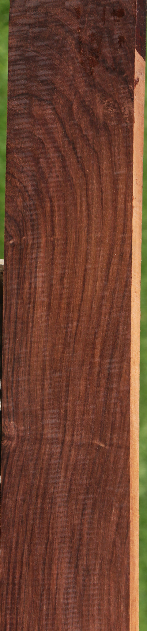 Honduras Rosewood is a centuries old classic Rosewood. Colors vary from violet purple colors to reddish hues. This dense and naturally oily wood produces a glass-like natural polish. It is increasingly difficult to obtain high quality, colorful lumber in this species. This wood cannot ship outside the USA. (Dalbergia stevensonii). Boards over 36" may have a slight 1/8" bow or twist. It is kiln dried, surfaced on two sides, and has been wax sealed on the ends. Take home your piece of this rare, clean, high quality Rosewood lumber. This piece has inclusions, a 3/8" crown, and a 3/8" bow. Please see pictures for details.