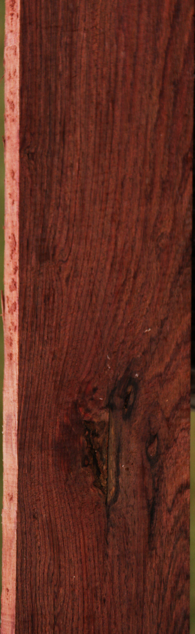 Honduras Rosewood is a centuries old classic Rosewood. Colors vary from violet purple colors to reddish hues. This dense and naturally oily wood produces a glass-like natural polish. It is increasingly difficult to obtain high quality, colorful lumber in this species. This wood cannot ship outside the USA. (Dalbergia stevensonii). Boards over 36" may have a slight 1/8" bow or twist. It is kiln dried, surfaced on two sides, and has been wax sealed on the ends. Take home your piece of this rare, clean, high quality Rosewood lumber. This piece has checks and inclusions. Please see pictures for details.