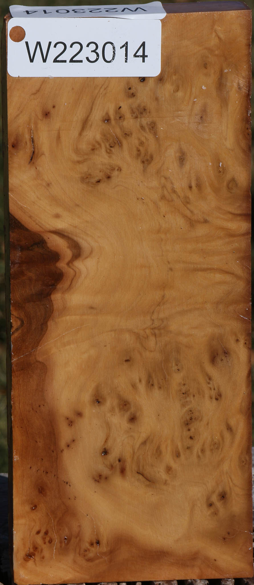 This beautiful Southeast Asian Hopea Stone burl is very dense and takes an incredible polish when finished. It was cut in 2018 and is equilibrium air dried, although larger pieces may have some residual moisture. The burl patterns in Hopea Stone look very similar to those of Amboyna burl with colors ranging between golden to orange/brown. An occasional check or inclusion may be present. This hardwood will make incredible one-of-a-kind woodworking projects. This piece has a rough corner, checks, and inclusions. Please see pictures for details.