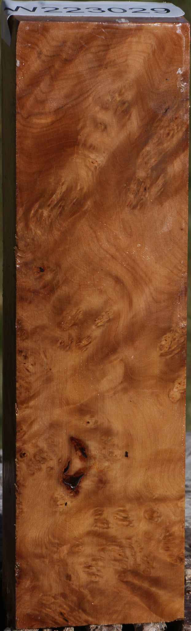 This beautiful Southeast Asian Hopea Stone burl is very dense and takes an incredible polish when finished. It was cut in 2018 and is equilibrium air dried, although larger pieces may have some residual moisture. The burl patterns in Hopea Stone look very similar to those of Amboyna burl with colors ranging between golden to orange/brown. An occasional check or inclusion may be present. This hardwood will make incredible one-of-a-kind woodworking projects. This piece has inclusions. Please see pictures for details.