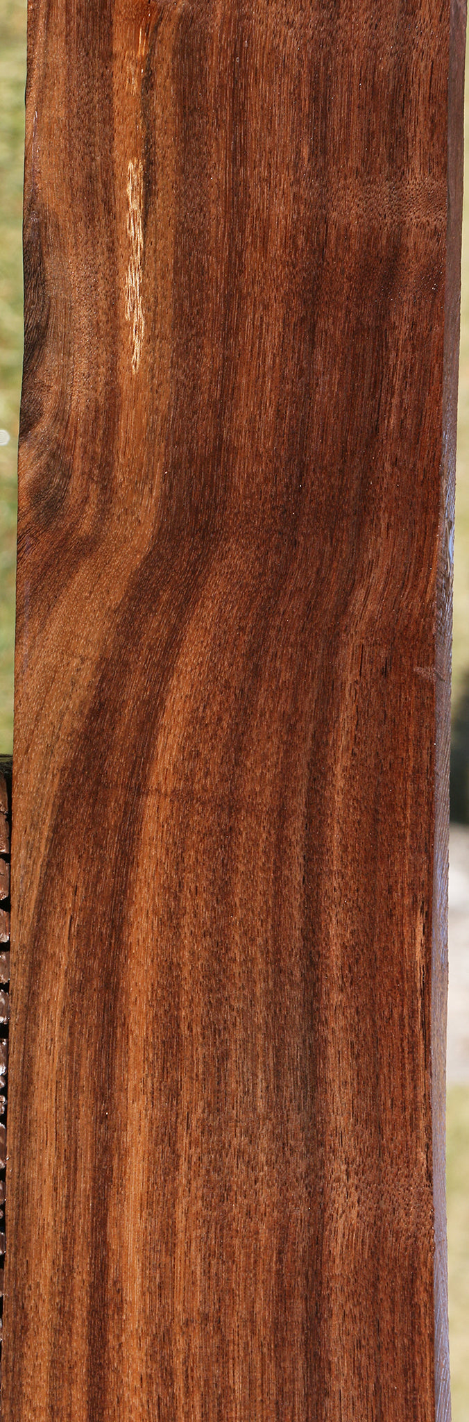 This Laurel stock has light brown to dark brown color with nearly black streaks and many have nice figure! It works and finishes well and contains slightly interlocked grain. Boards over 36" may have a slight 1/16" to 1/8" bow or twist. This stock is kiln dried and surfaced on two sides. This piece has inclusions. Please see pictures for details.
