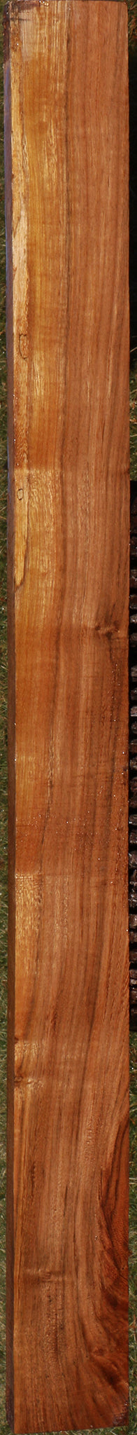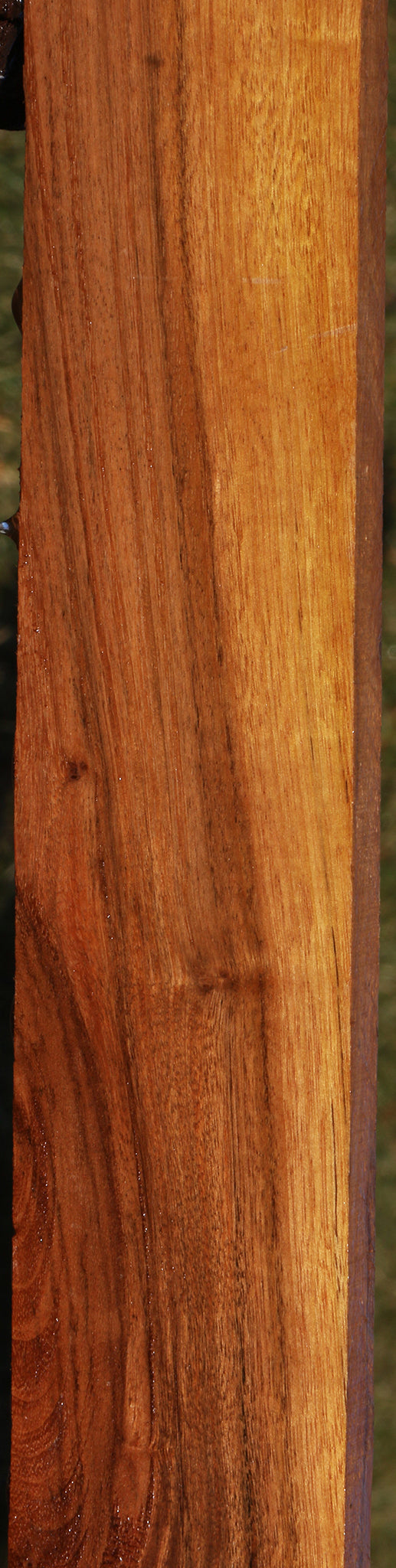 This Laurel stock has light brown to dark brown color with nearly black streaks and many have nice figure! It works and finishes well and contains slightly interlocked grain. Boards over 36" may have a slight 1/16" to 1/8" bow or twist. This stock is kiln dried and surfaced on two sides. This piece has inclusions. Please see pictures for details.