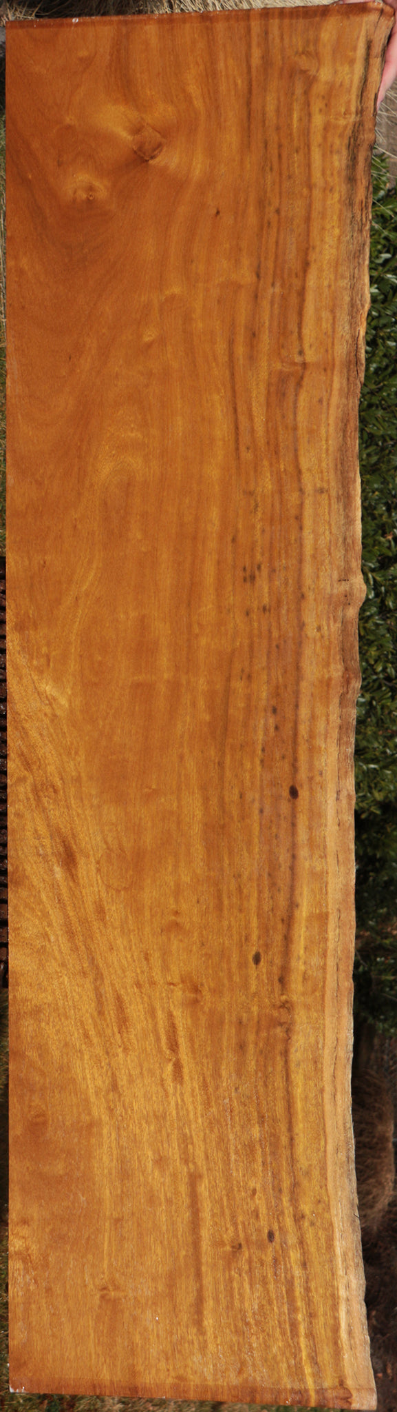 This beautiful Itauba is from Eastern Brazil. Colors range from reds to browns with a combination of golden yellow. The wood works well with sharp tools and takes a high natural polish that is glassy and smooth. The grain is generally interlocked, giving some three dimensional properties to quarter sawn faces. Pomelle figure may be present. Pin holes or minor end checks may exist in the sapwood. This wood has air dried for 2.5 years as of November of 2023 and may contain some residual moisture. The ends are wax sealed. Boards over 36" may have a slight bow or twist. Enjoy this South American beauty! This piece has splits, checks, and pin holes. Please see pictures for details.