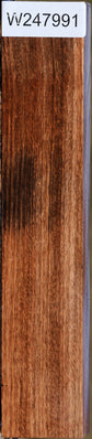 This kiln dried Jackalberry ebony has been surfaced on two sides and is ready for use. The black portions of the wood may contain checks, splits, and voids. Some bug holes are present, producing an effect similar to ambrosia beetle staining, resulting in unique black coloration in affected areas. Many boards also display striking ribbon or fiddleback figure—an uncommon trait for any ebony species. Boards longer than 36 inches may exhibit a slight bow or twist of up to 1/8 inch. This rare Jackalberry Ebony is a wonderful choice for your next woodworking project.