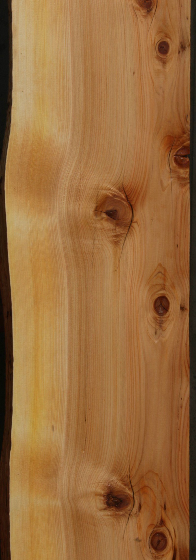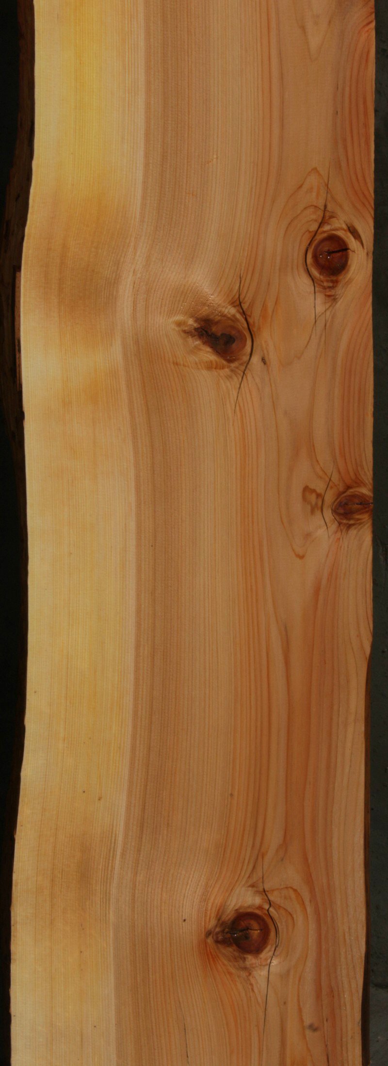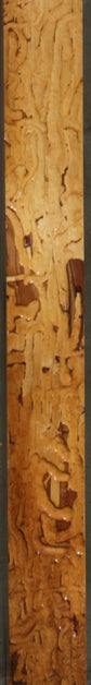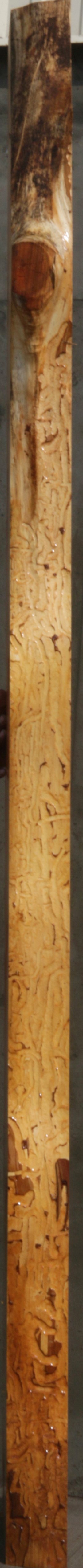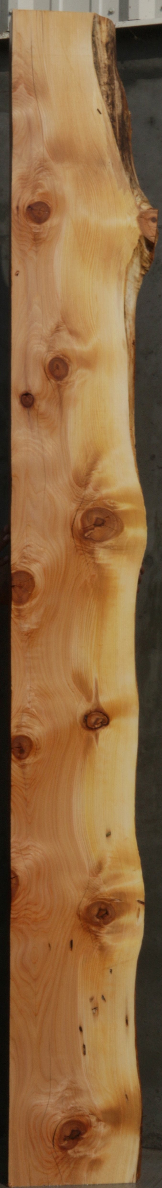 This mantel has nice grain and color! It has numerous knots with checks, full length splits, and bark incursions present. There are some bug trails along the ive edge that adds character to this piece! Kiln dried and surfaced on two sides.