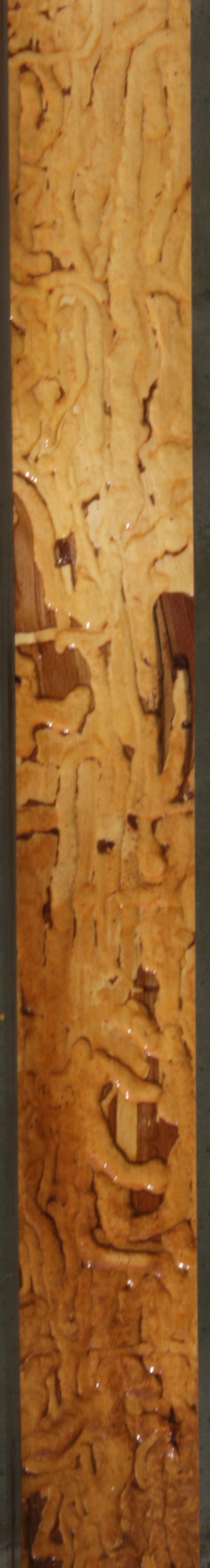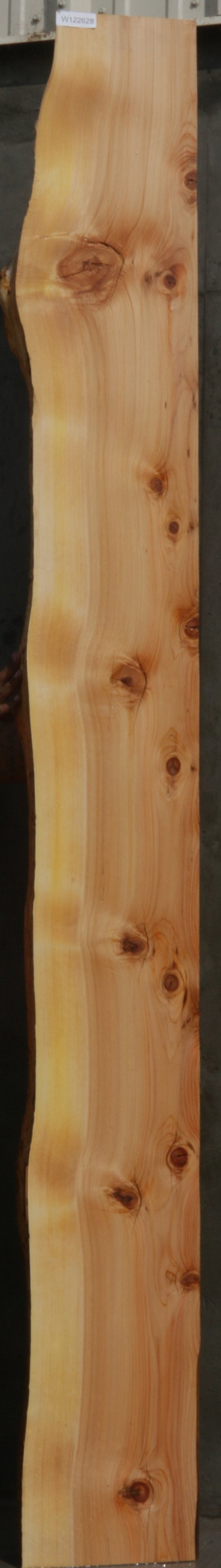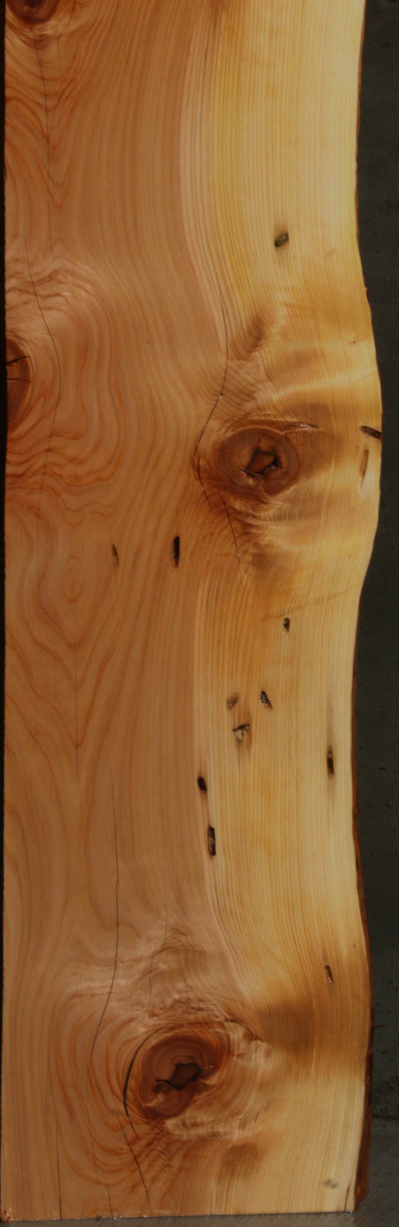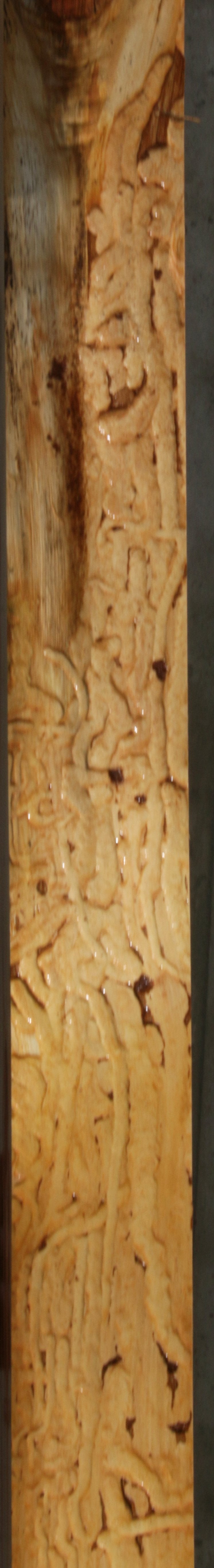 This mantel has nice grain and color! It has numerous knots with checks, full length splits, and bark incursions present. There are some bug trails along the ive edge that adds character to this piece! Kiln dried and surfaced on two sides.