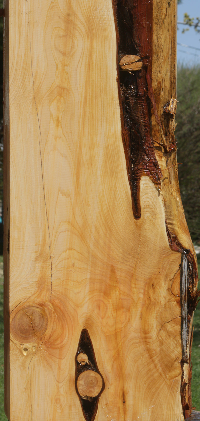 This Juniper lumber has nice grain and color! It has numerous knots with checks, splits, and bark incursions that add a rustic and beautiful appearance to this species. Bug holes...