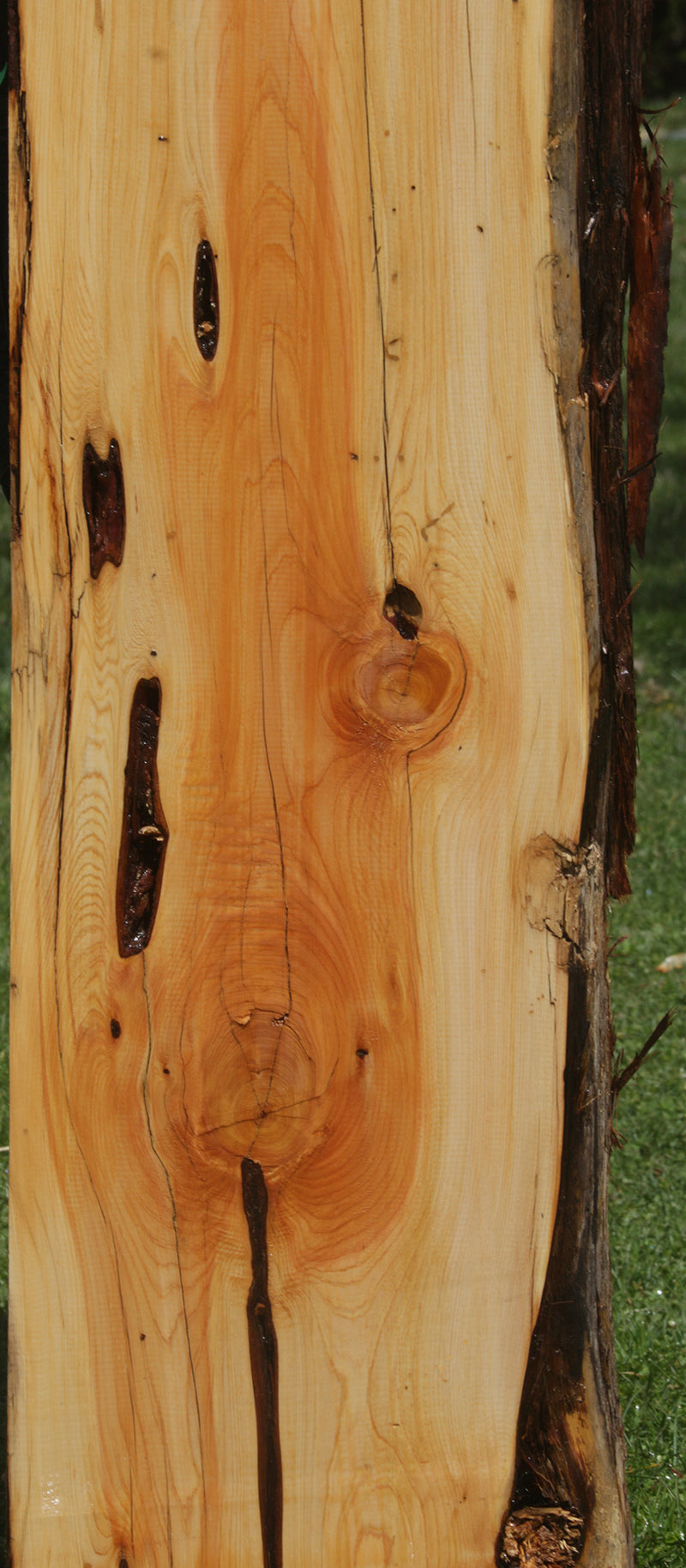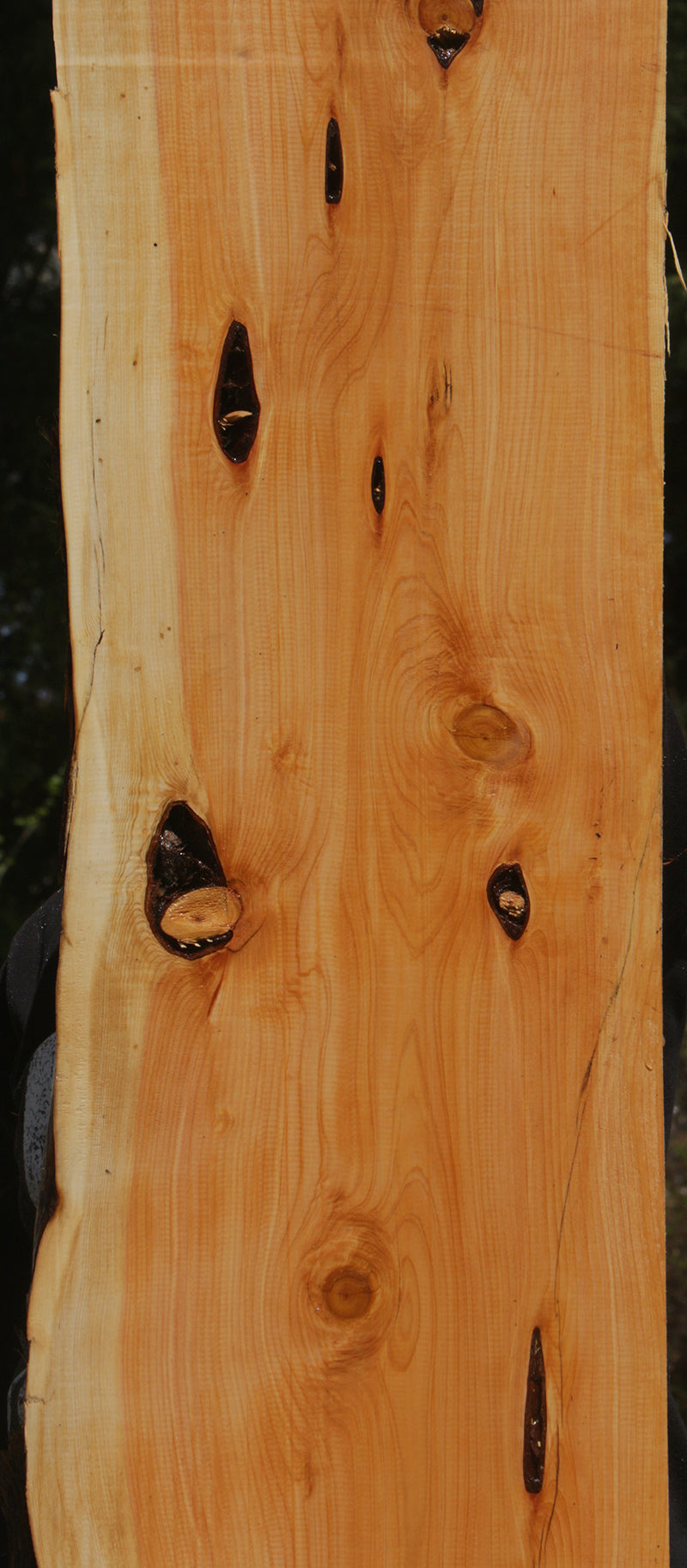 This Juniper lumber has nice grain and color! It has numerous knots with checks, splits, and bark incursions that add a rustic and beautiful appearance to this species. Bug holes...