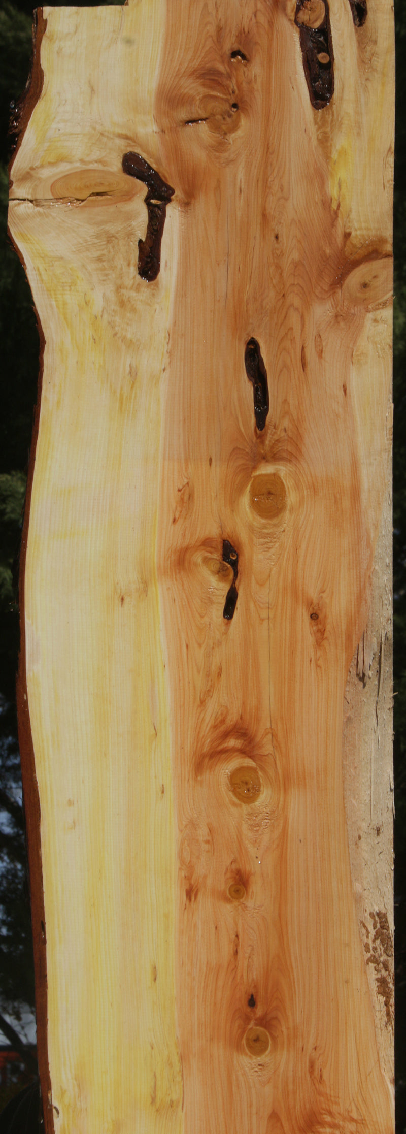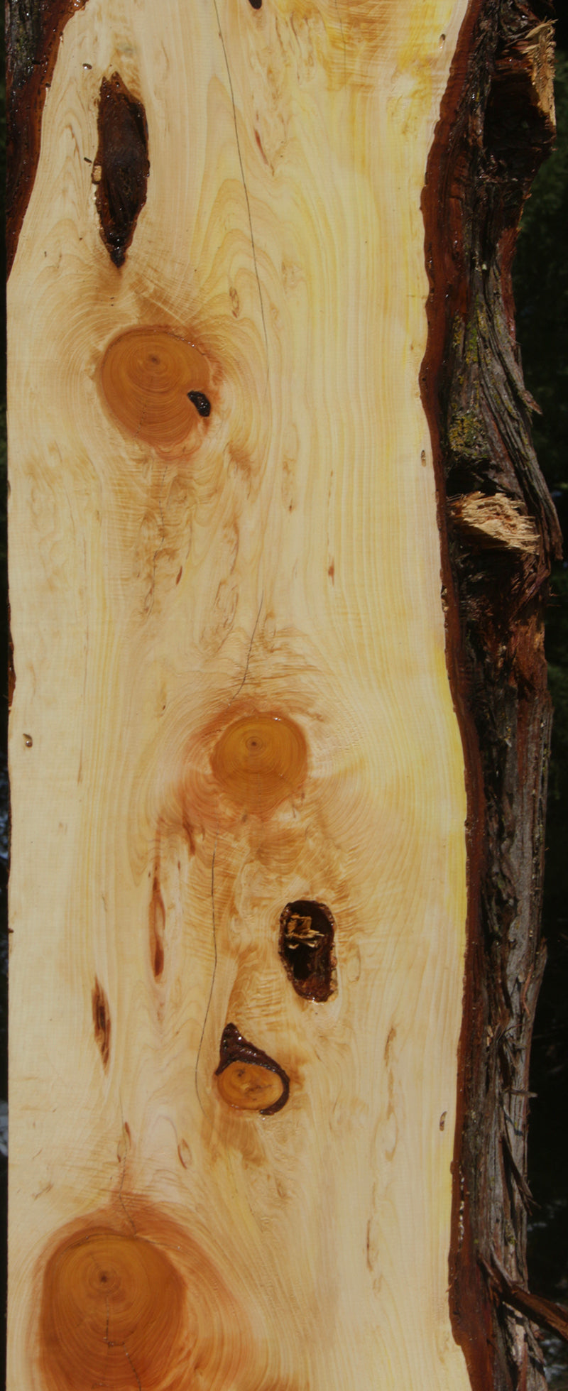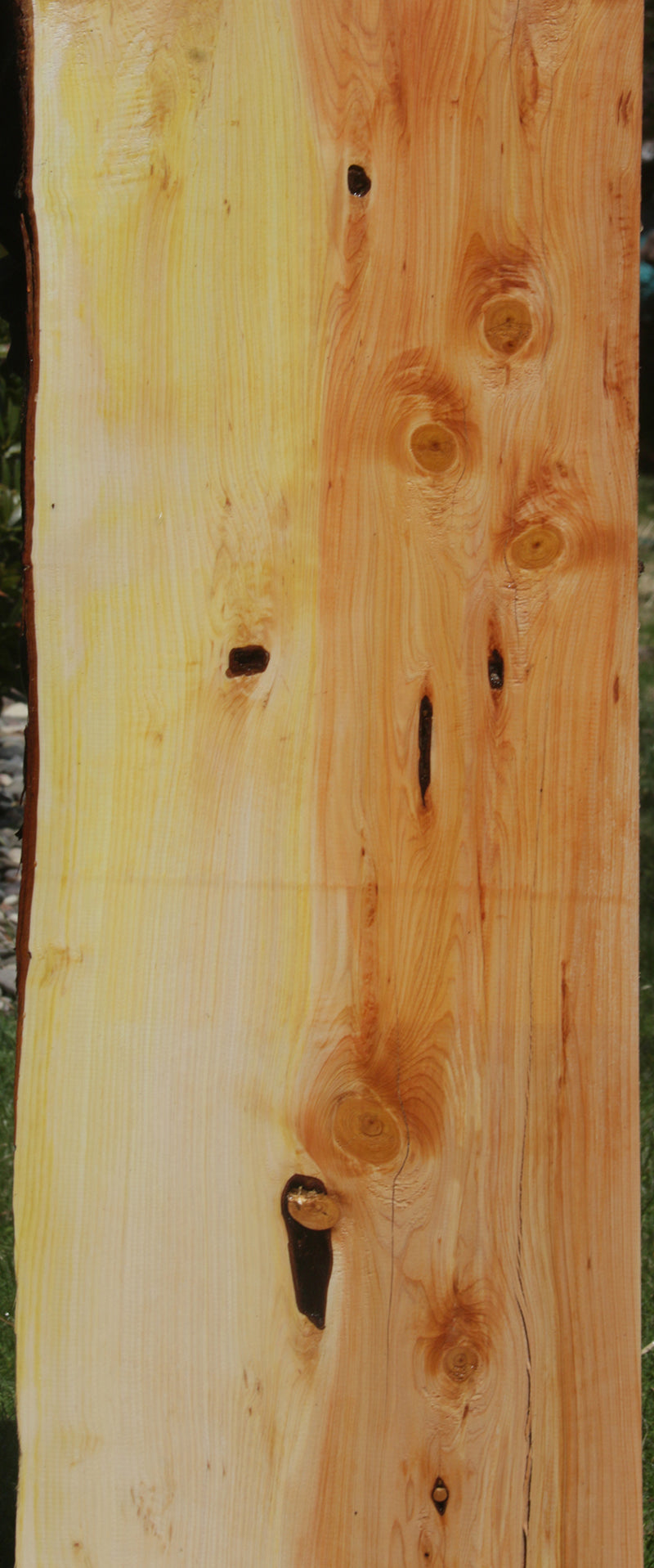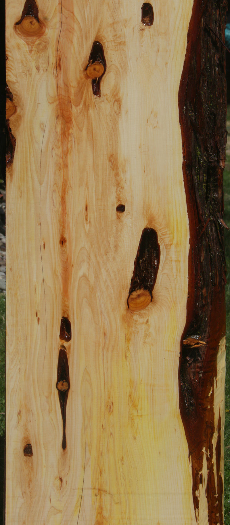 This Juniper lumber has nice grain and color! It has numerous knots with checks, splits, and bark incursions that add a rustic and beautiful appearance to this species. Bug holes...