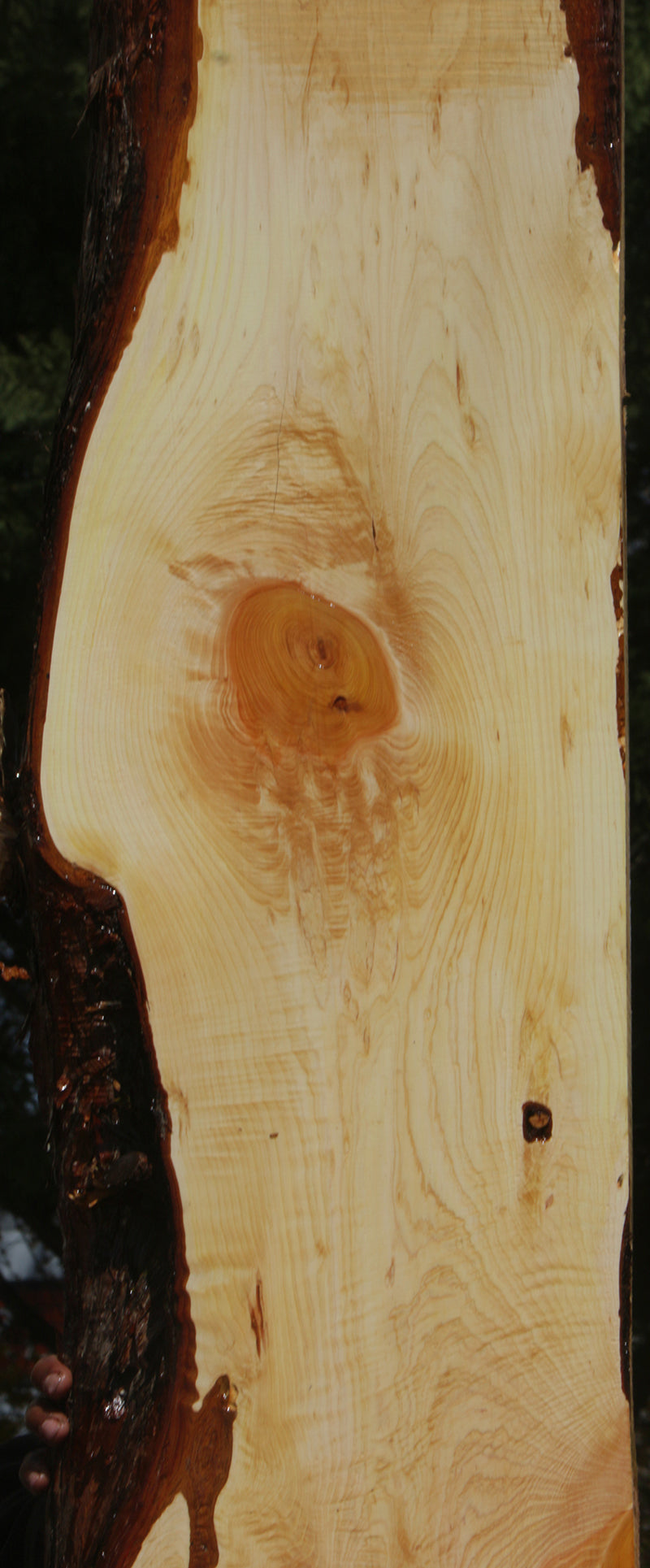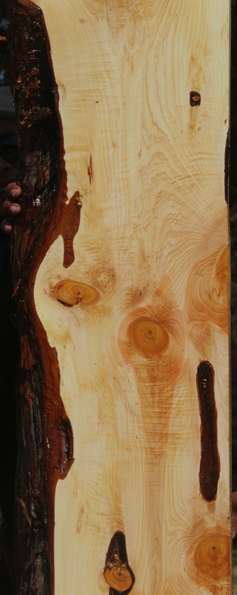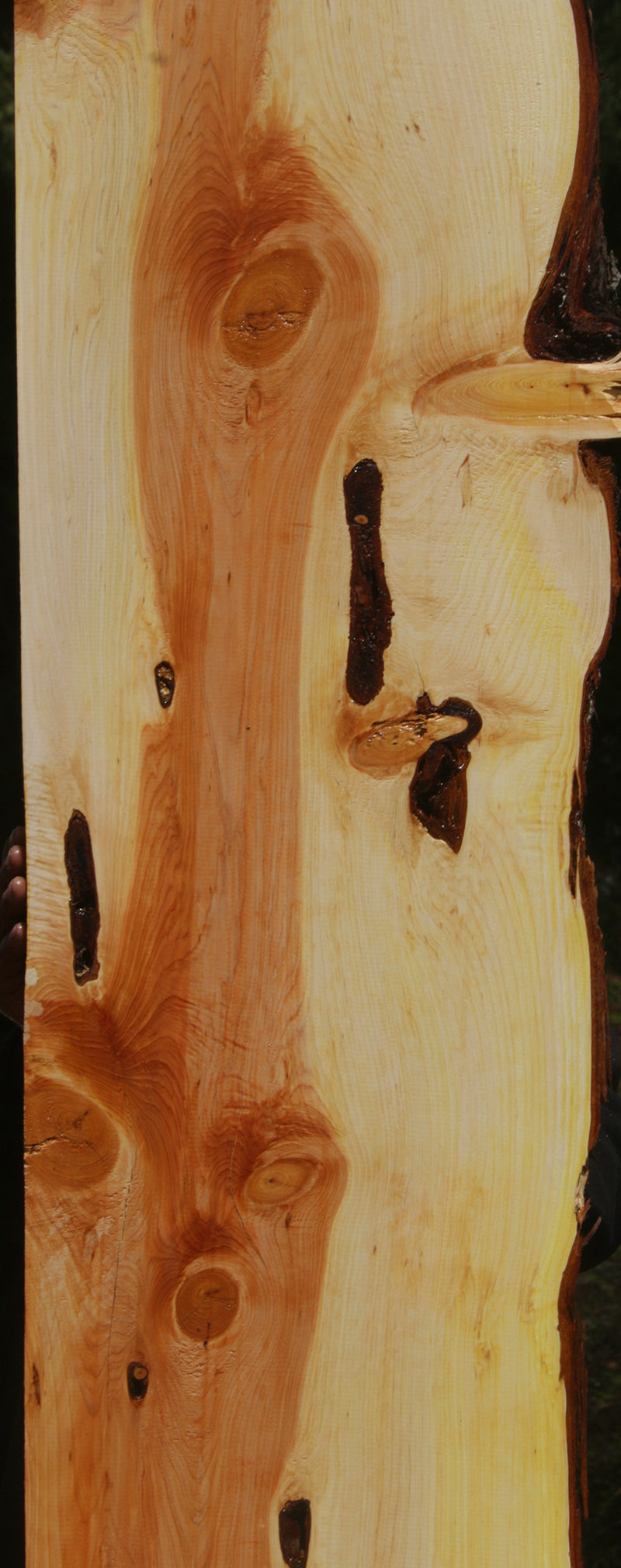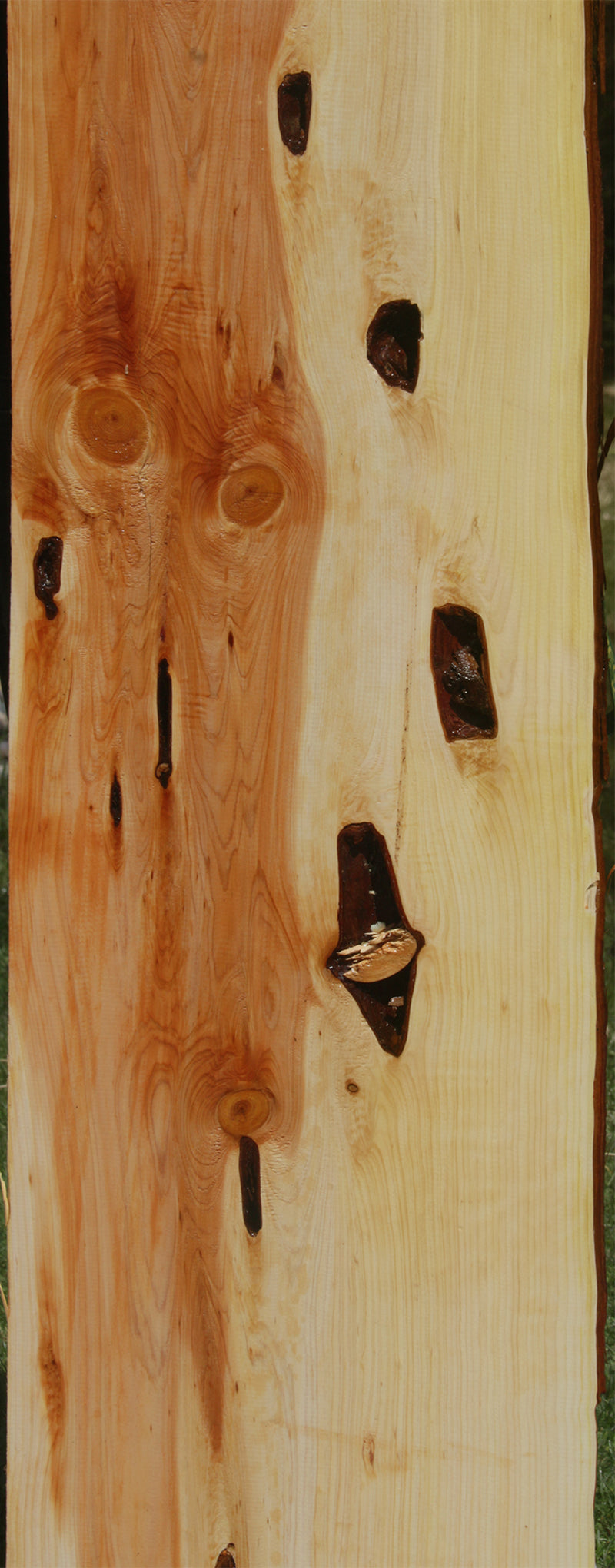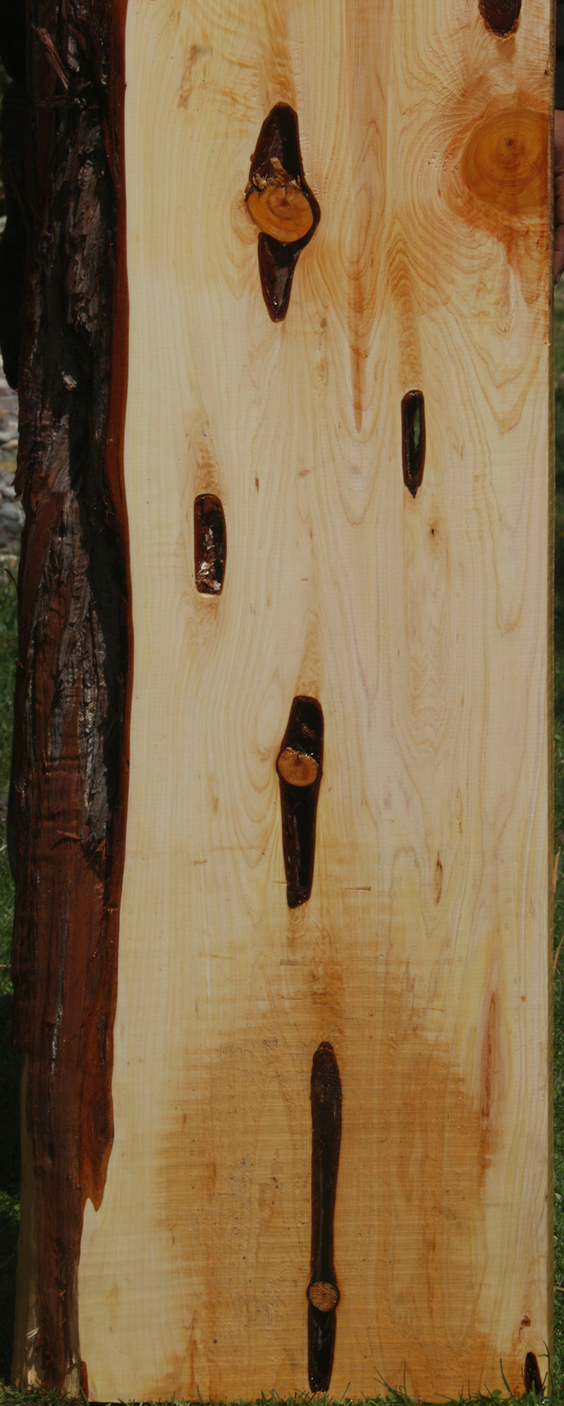 This Juniper lumber has nice grain and color! It has numerous knots with checks, splits, and bark incursions that add a rustic and beautiful appearance to this species. Bug holes...