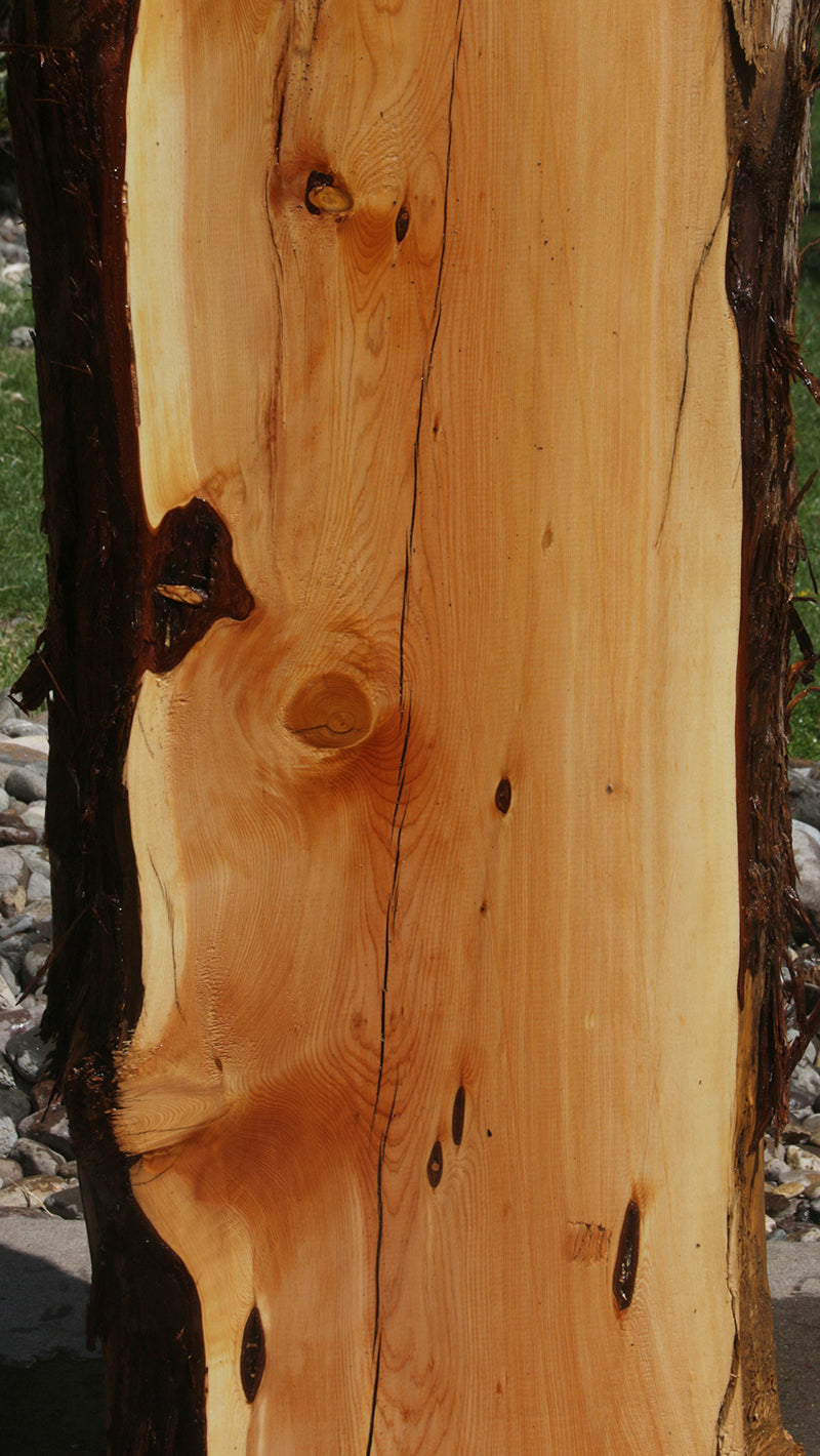 This Juniper lumber has nice grain and color! It has numerous knots with checks, splits, and bark incursions that add a rustic and beautiful appearance to this species. Bug holes...