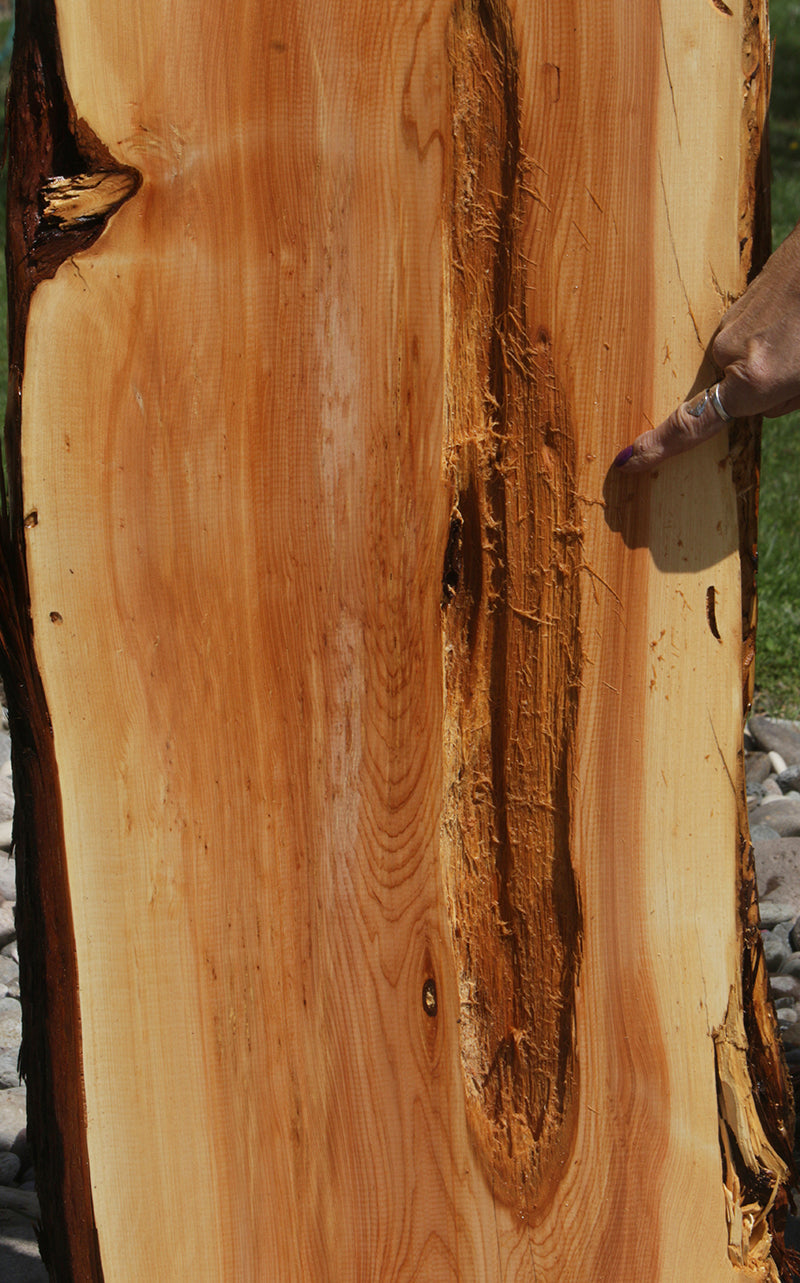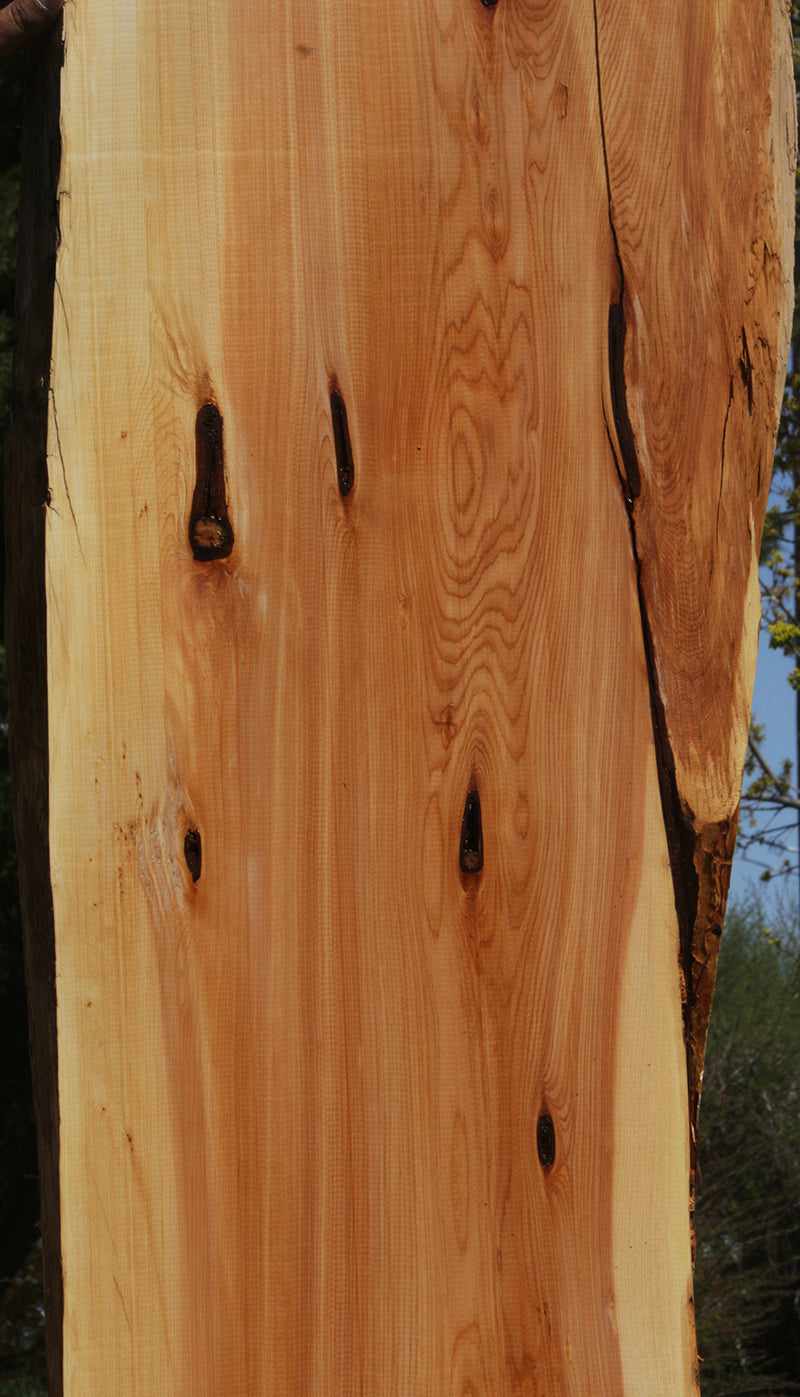 This Juniper lumber has nice grain and color! It has numerous knots with checks, splits, and bark incursions that add a rustic and beautiful appearance to this species. Bug holes...