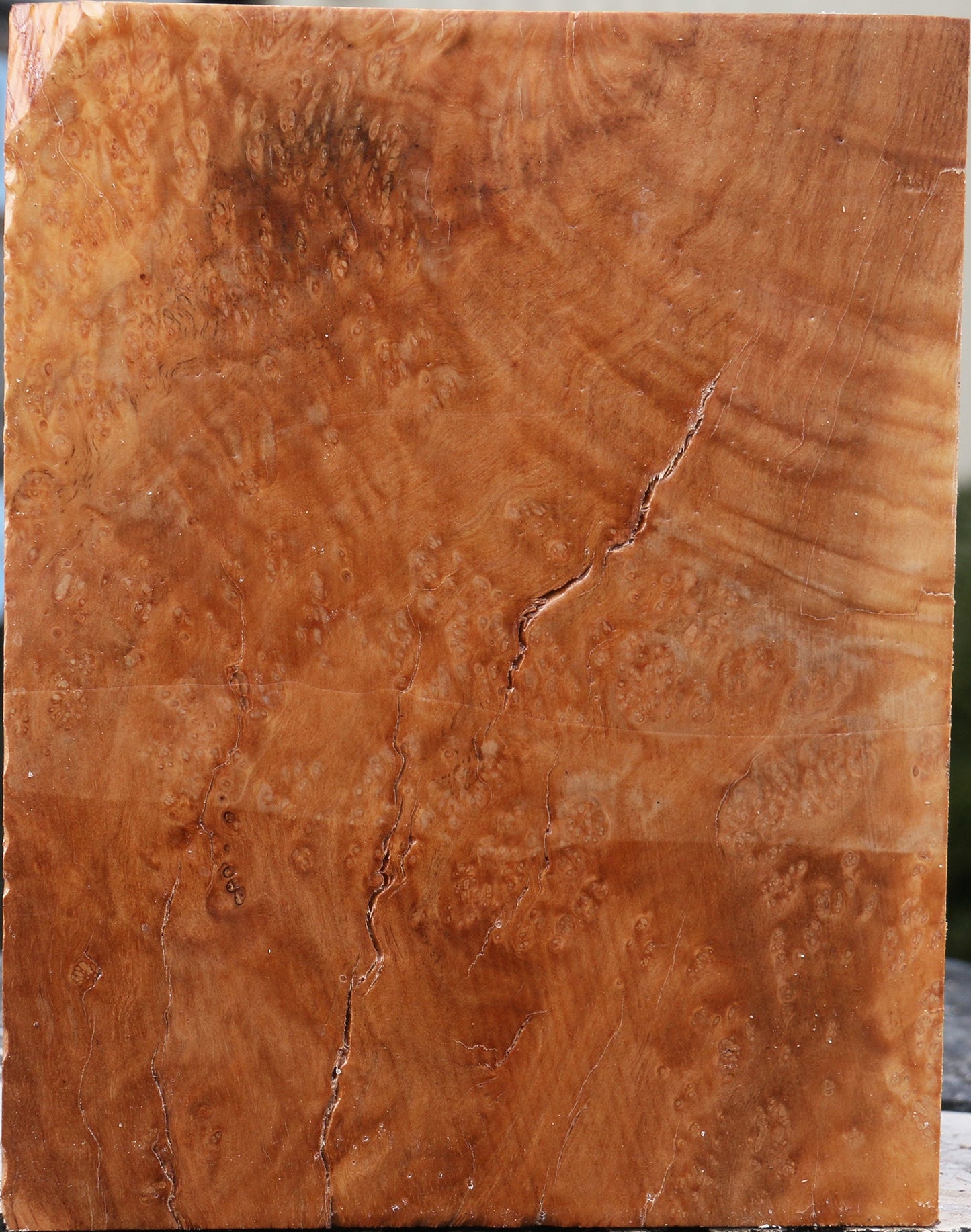 Kanista is a unique tropical species from Central America. The tree produces an egg shaped fruit that is wonderful for the human immune system and vision. The wood is dense and the burl has beautiful grain patterns, figure and eyes. Checks, inclusions, voids, and live edges may be present and are not considered defects. This rare hardwood burl is ideal for small, fine woodworking articles such as knives, pens, jewelry boxes, wood bowls, and more. This has been air dried for 4 years. Most stock is dry and ready to use, but residual moisture may be present in blanks over 2.5" thick. This piece has inclusions. Please see pictures for details.