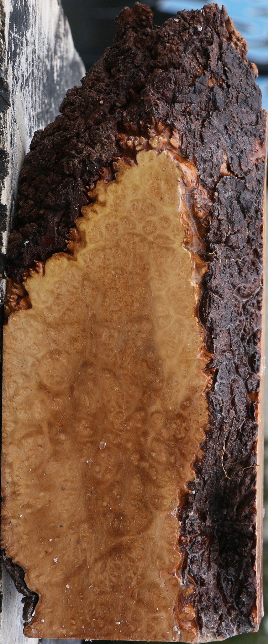 Kanista is a unique tropical species from Central America. The tree produces an egg shaped fruit that is wonderful for the human immune system and vision. The wood is dense and the burl has beautiful grain patterns, figure and eyes. Checks, inclusions, voids, and live edges may be present and are not considered defects. This rare hardwood burl is ideal for small, fine woodworking articles such as knives, pens, jewelry boxes, wood bowls, and more. This has been air dried for 4 years. Most stock is dry and ready to use, but residual moisture may be present in blanks over 2.5" thick.