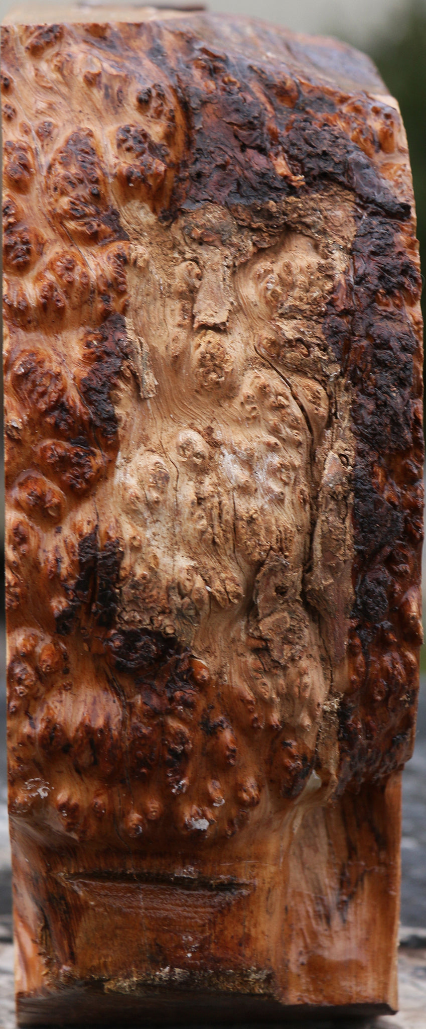 Kanista is a unique tropical species from Central America. The tree produces an egg shaped fruit that is wonderful for the human immune system and vision. The wood is dense and the burl has beautiful grain patterns, figure and eyes. Checks, inclusions, voids, and live edges may be present and are not considered defects. This rare hardwood burl is ideal for small, fine woodworking articles such as knives, pens, jewelry boxes, wood bowls, and more. This has been air dried for 4 years. Most stock is dry and ready to use, but residual moisture may be present in blanks over 2.5" thick.