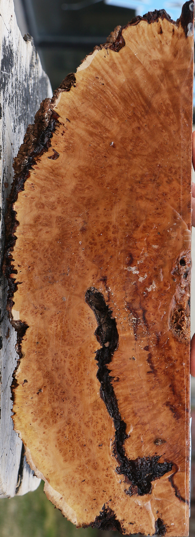 Kanista is a unique tropical species from Central America. The tree produces an egg shaped fruit that is wonderful for the human immune system and vision. The wood is dense and the burl has beautiful grain patterns, figure and eyes. Checks, inclusions, voids, and live edges may be present and are not considered defects. This rare hardwood burl is ideal for small, fine woodworking articles such as knives, pens, jewelry boxes, wood bowls, and more. This has been air dried for 4 years. Most stock is dry and ready to use, but residual moisture may be present in blanks over 2.5" thick.