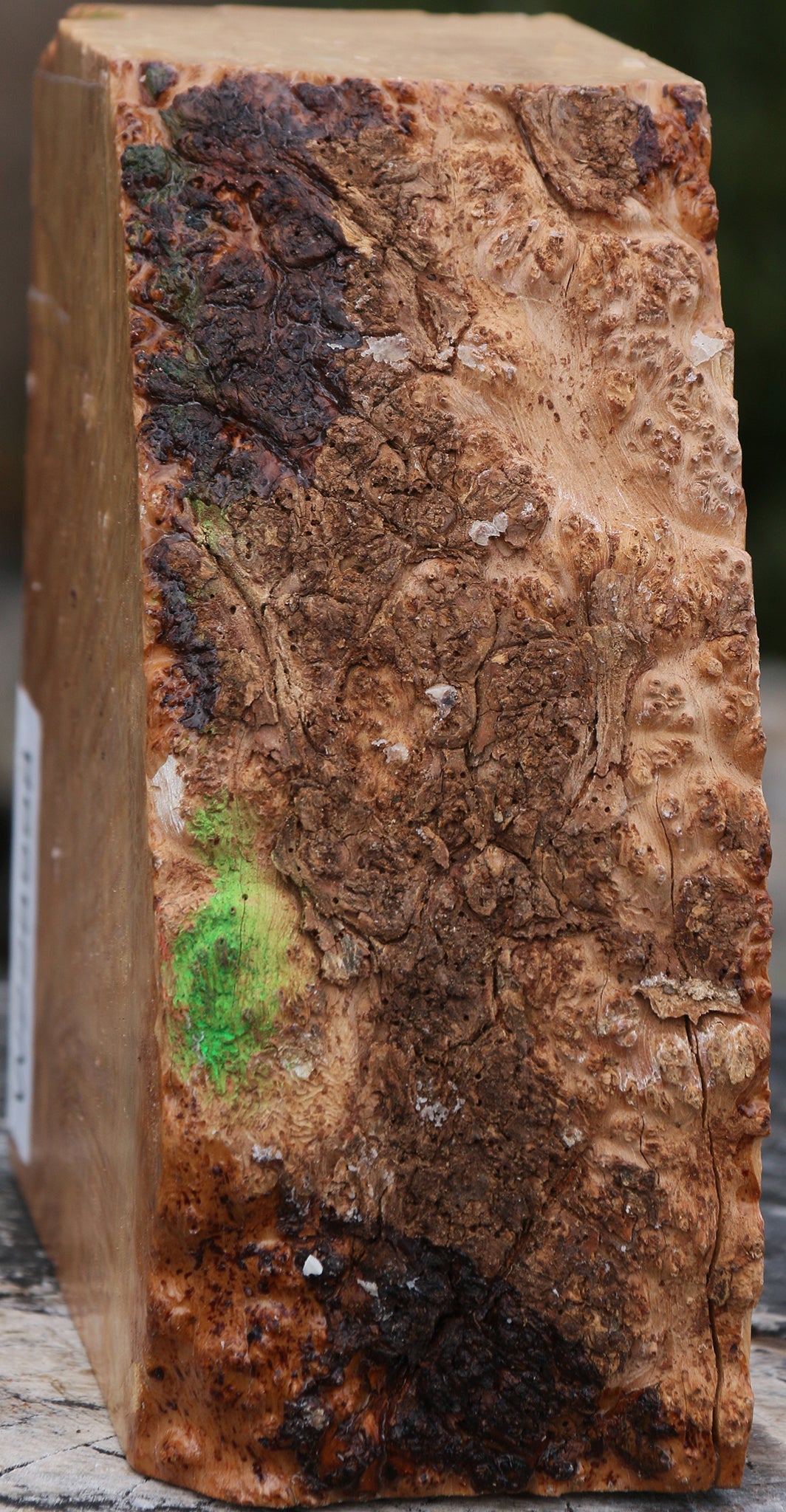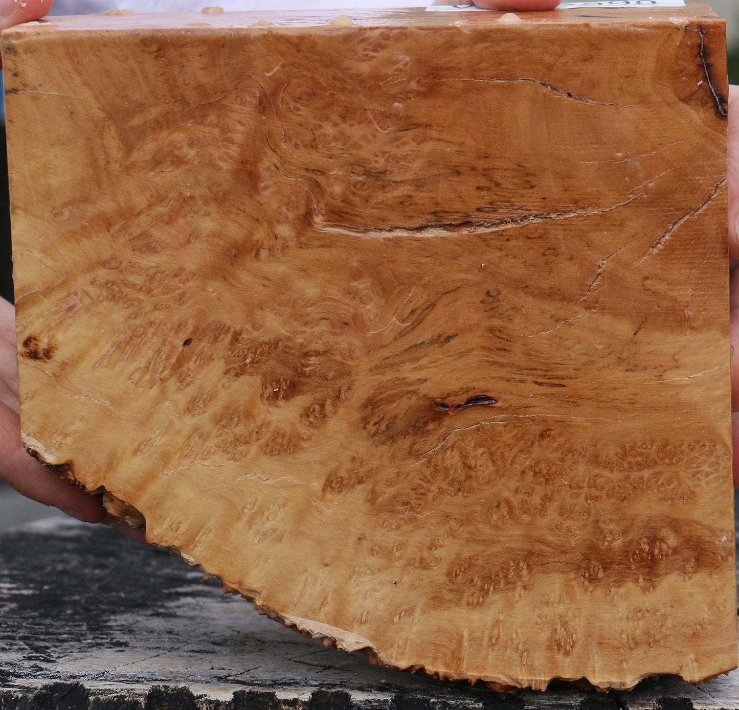 Kanista is a unique tropical species from Central America. The tree produces an egg shaped fruit that is wonderful for the human immune system and vision. The wood is dense and the burl has beautiful grain patterns, figure and eyes. Checks, inclusions, voids, and live edges may be present and are not considered defects. This rare hardwood burl is ideal for small, fine woodworking articles such as knives, pens, jewelry boxes, wood bowls, and more. This has been air dried for 4 years. Most stock is dry and ready to use, but residual moisture may be present in blanks over 2.5" thick.