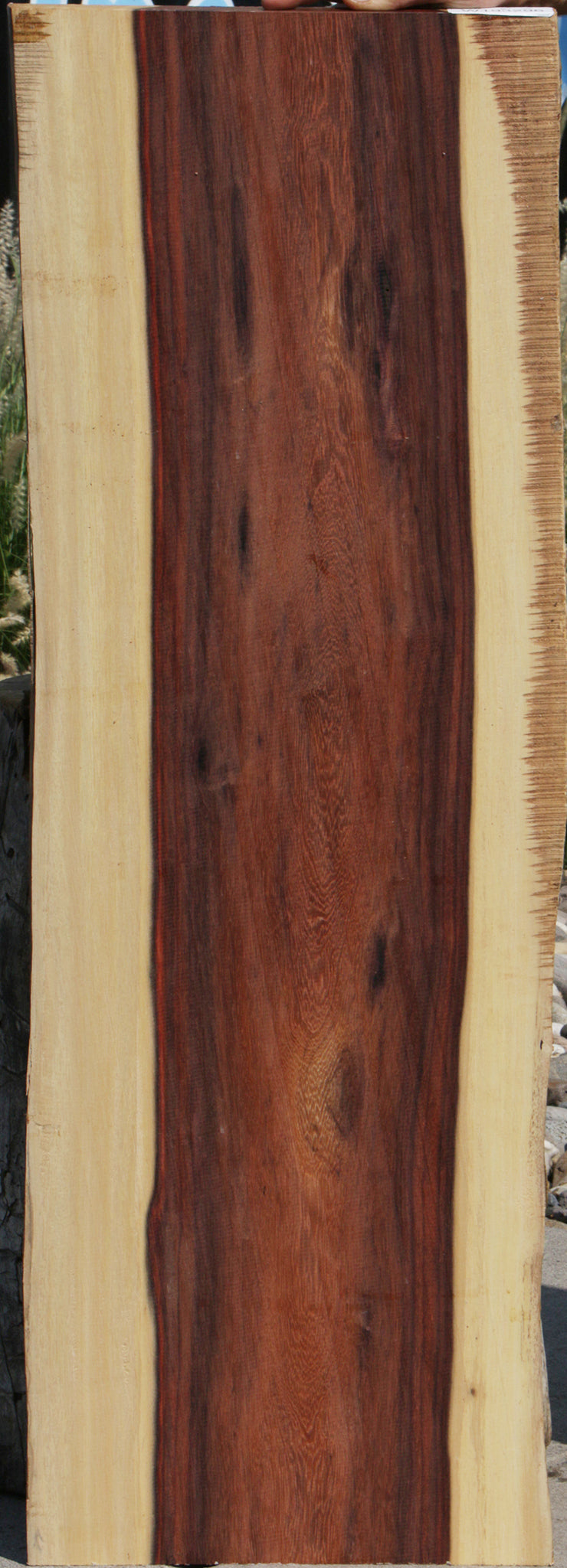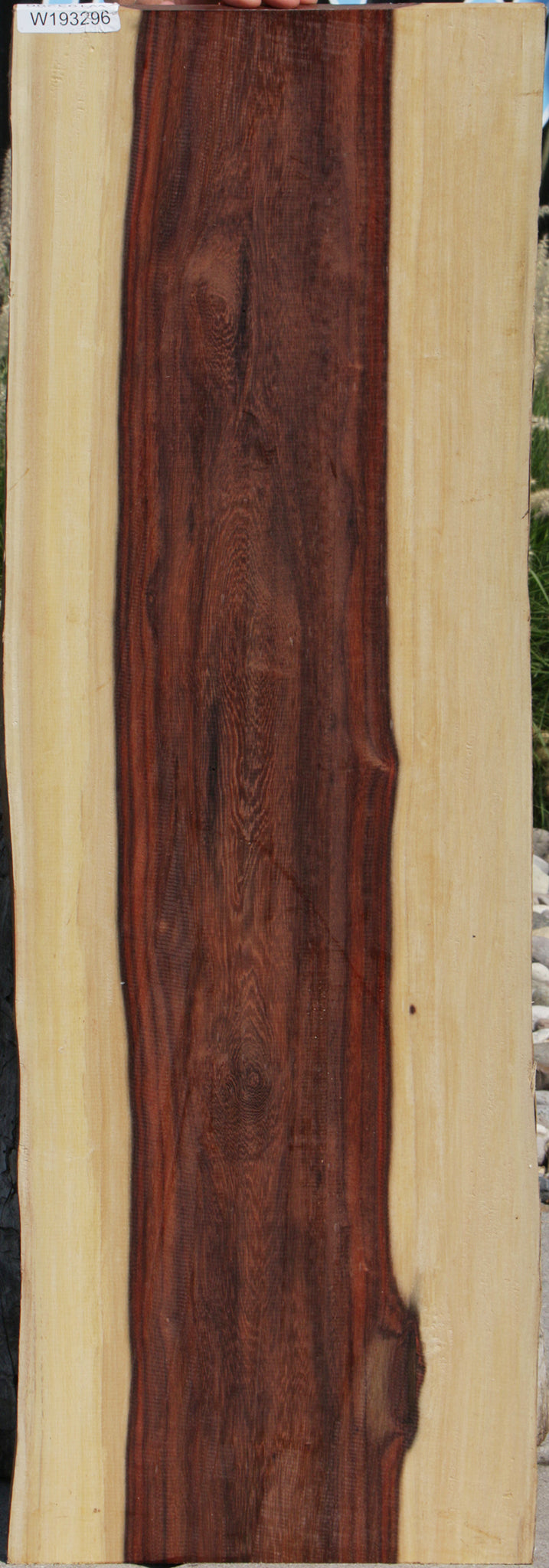 This beautiful Katalox wood has been kiln dried and is surfaced on two sides. A rough edge or minor end/surface check may be present. Pin holes may be present in the sapwood. Boards with live edges usually have some checks along the live edge. This unique hardwood is ideal for shelves or resin filled epoxy tables, but can be used for just about any woodworking project your creativity dictates! Katalox is an excellent substitute for African Ebony in stringed instruments. Over several years Katalox ages to a dark purple/black. This piece has checks, planer skip, and bug holes. Please see pictures for details.