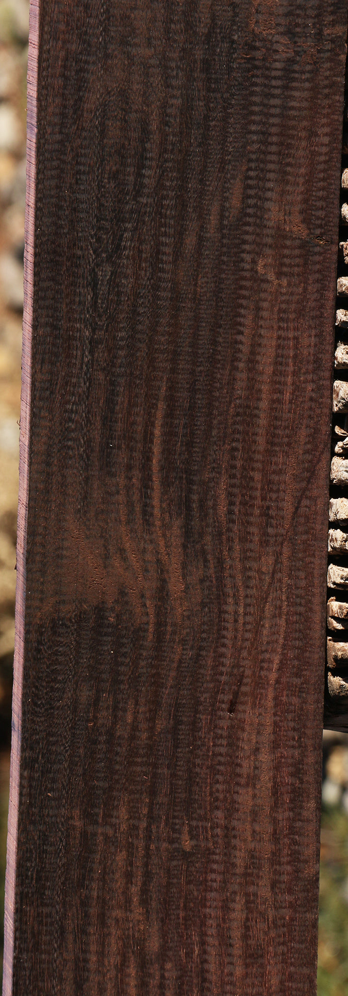 This beautiful Katalox wood has been kiln dried and is surfaced on two sides. A rough edge or minor end/surface check may be present. Pin holes may be present in the sapwood. This unique hardwood is ideal for shelves or resin-filled epoxy tables, but can be used for just about any woodworking project your creativity dictates! Katalox is an excellent substitute for African Ebony in stringed instruments. Over several years Katalox ages to a dark purple/black. This piece has bug holes, pin holes, and inclusions. Please see pictures for details.