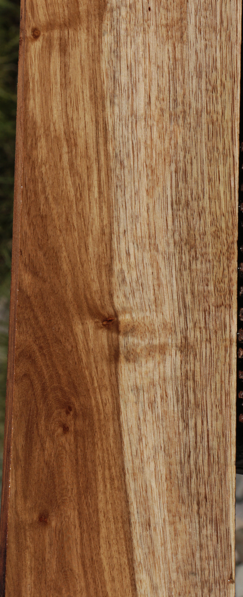 This colorful Kiaat lumber is kiln dried and has been surfaced on two sides. It is generally free from defects, but may have an occasional end or surface check. Boards over 36" may have a slight bow or twist up to 1/8". Some boards have figure. This wood is ideal for just about any woodworking project. It is easy to work, durable, has great stability in service, and polishes well, not to mention the spicy and pleasing fragrance when it is cut. This piece has inclusions and bug holes. Please see pictures for details.