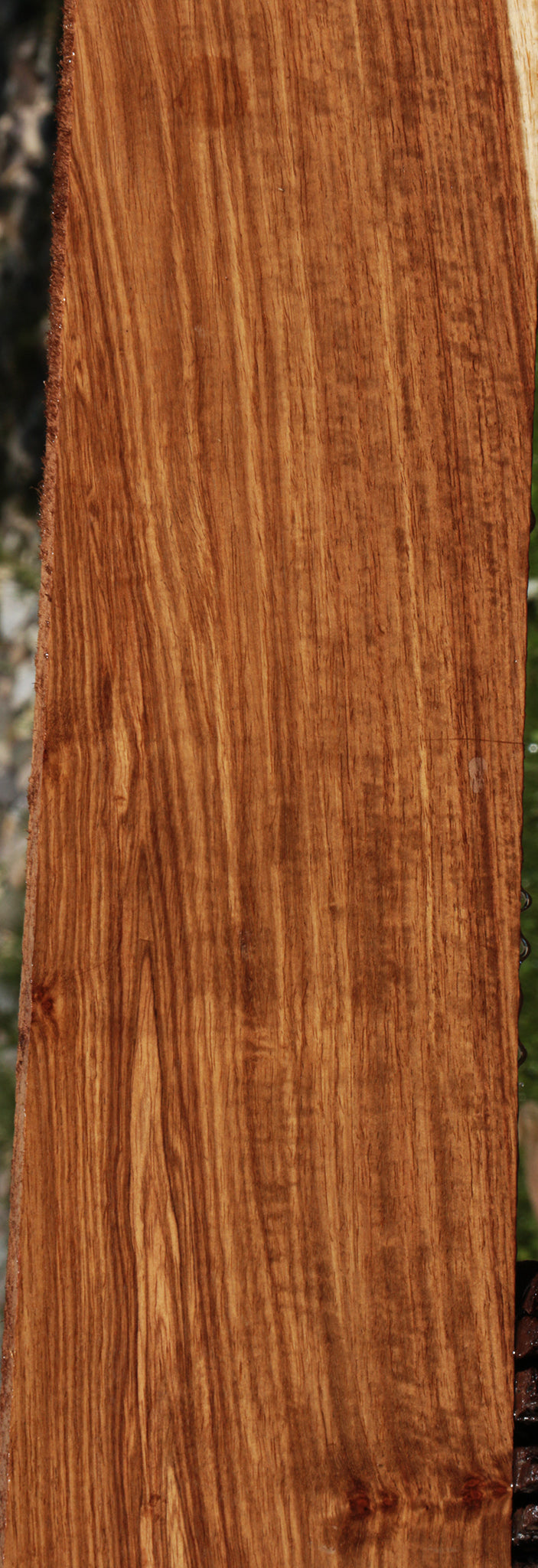 This colorful Kiaat lumber is kiln dried and has been surfaced on two sides. It is generally free from defects, but may have an occasional end or surface check. Boards over 36" may have a slight bow or twist up to 1/8". Some boards have figure. This wood is ideal for just about any woodworking project. It is easy to work, durable, has great stability in service, and polishes well, not to mention the spicy and pleasing fragrance when it is cut. This piece has inclusions. Please see pictures for details.
