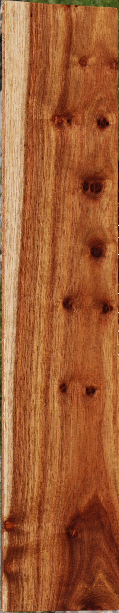 This colorful Kiaat lumber is kiln dried and has been surfaced on two sides. It is generally free from defects, but may have an occasional end or surface check. Boards over 36" may have a slight bow or twist up to 1/8". Some boards have figure. This wood is ideal for just about any woodworking project. It is easy to work, durable, has great stability in service, and polishes well, not to mention the spicy and pleasing fragrance when it is cut. This piece has inclusions. Please see pictures for details.
