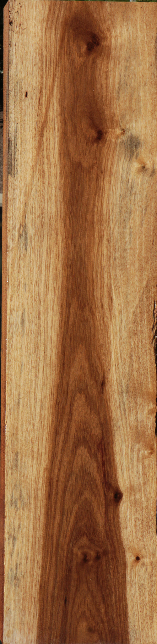 This colorful Kiaat lumber is kiln dried and has been surfaced on two sides. It is generally free from defects, but may have an occasional end or surface check. Boards over 36" may have a slight bow or twist up to 1/8". Some boards have figure. This wood is ideal for just about any woodworking project. It is easy to work, durable, has great stability in service, and polishes well, not to mention the spicy and pleasing fragrance when it is cut. This piece is 50/50 contrast and has inclusions. Please see pictures for details.