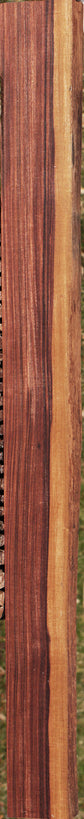 This is probably the last batch of Kingwood that we will ever have available. Kingwood, the wood of Kings, is a true Rosewood. It has rich & regal purple/black color with interesting golden and white sapwood contrast. It is dense (.98 to 1.2 specific gravity) and takes an incredibly high natural polish. This lumber has been carefully kiln dried and surfaced on two sides. There may be a rustic live edge with machete cuts and an occasional check may also be present. It is normal for live edge boards to have checks in the sapwood that may slightly penetrate the heartwood. Overall it is very clean material. This ships to the USA only! This piece has inclusions. Please see pictures for details.