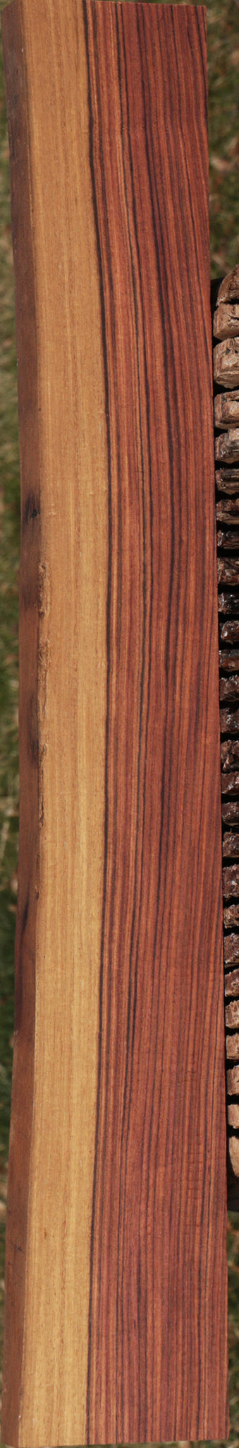 This is probably the last batch of Kingwood that we will ever have available. Kingwood, the wood of Kings, is a true Rosewood. It has rich & regal purple/black color with interesting golden and white sapwood contrast. It is dense (.98 to 1.2 specific gravity) and takes an incredibly high natural polish. This lumber has been carefully kiln dried and surfaced on two sides. There may be a rustic live edge with machete cuts and an occasional check may also be present. It is normal for live edge boards to have checks in the sapwood that may slightly penetrate the heartwood. Overall it is very clean material. This ships to the USA only!
