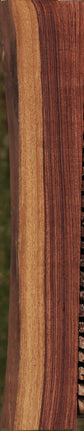 This is probably the last batch of Kingwood that we will ever have available. Kingwood, the wood of Kings, is a true Rosewood. It has rich & regal purple/black color with interesting golden and white sapwood contrast. It is dense (.98 to 1.2 specific gravity) and takes an incredibly high natural polish. This lumber has been carefully kiln dried and surfaced on two sides. There may be a rustic live edge with machete cuts and an occasional check may also be present. It is normal for live edge boards to have checks in the sapwood that may slightly penetrate the heartwood. Overall it is very clean material. This ships to the USA only!