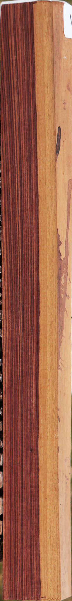 This is probably the last batch of Kingwood that we will ever have available. Kingwood, the wood of Kings, is a true Rosewood. It has rich & regal purple/black color with interesting golden and white sapwood contrast. It is dense (.98 to 1.2 specific gravity) and takes an incredibly high natural polish. This lumber has been carefully kiln dried and surfaced on two sides. There may be a rustic live edge with machete cuts and an occasional check may also be present. It is normal for live edge boards to have checks in the sapwood that may slightly penetrate the heartwood. Overall it is very clean material. This ships to the USA only! This piece has inclusions. Please see pictures for details.
