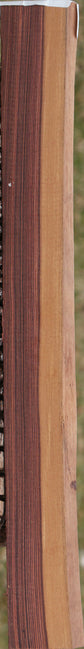 This is probably the last batch of Kingwood that we will ever have available. Kingwood, the wood of Kings, is a true Rosewood. It has rich & regal purple/black color with interesting golden and white sapwood contrast. It is dense (.98 to 1.2 specific gravity) and takes an incredibly high natural polish. This lumber has been carefully kiln dried and surfaced on two sides. There may be a rustic live edge with machete cuts and an occasional check may also be present. It is normal for live edge boards to have checks in the sapwood that may slightly penetrate the heartwood. Overall it is very clean material. This ships to the USA only! This piece has checks and inclusions. Please see pictures for details.
