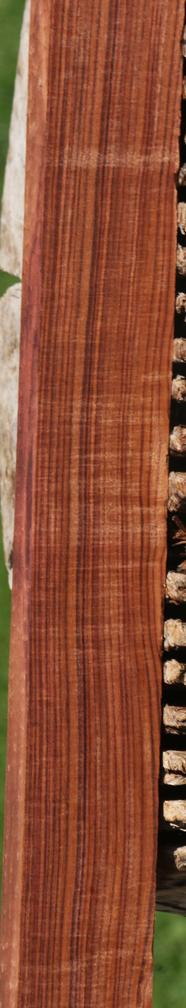 This is probably the last batch of Kingwood that we will ever have available. Kingwood, the wood of kings, is a true Rosewood. It has rich & regal purple/black color with interesting golden and white sapwood contrast. It is dense (.98 to 1.2 specific gravity) and takes an incredibly high natural polish. This lumber has been carefully kiln dried and surfaced on two sides. There may be a rustic live edge with machete cuts and an occasional check may also be present. It is normal for live edge boards to have checks in the sapwood that may slightly penetrate the heartwood. Overall it is very clean material. Some pieces may contain pin holes. Boards over 36" may have a slight 1/16" to 1/8" bow. This ships to the USA only.
