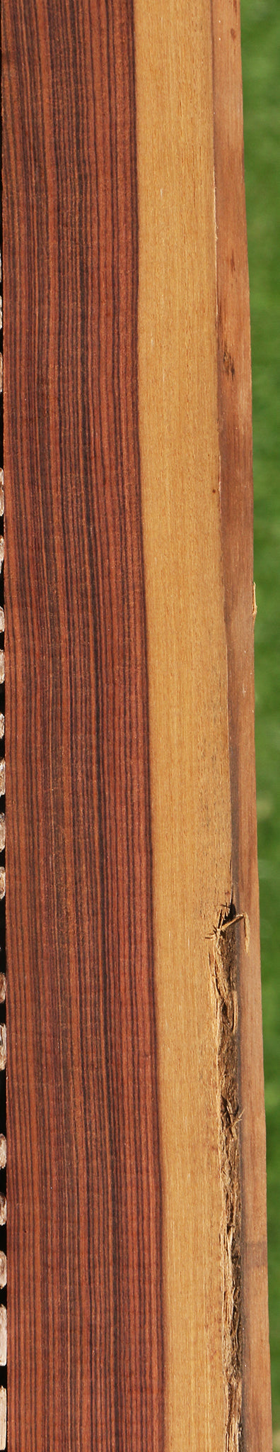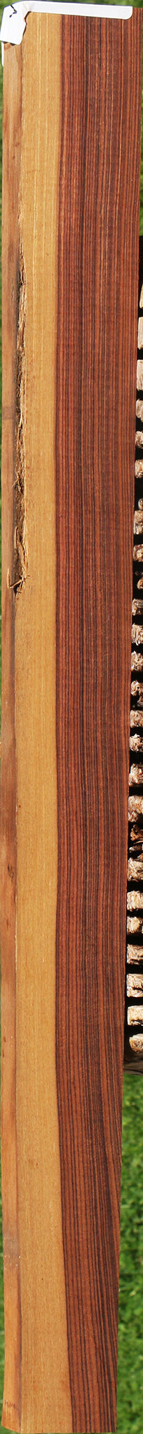 This is probably the last batch of Kingwood that we will ever have available. Kingwood, the wood of kings, is a true Rosewood. It has rich & regal purple/black color with interesting golden and white sapwood contrast. It is dense (.98 to 1.2 specific gravity) and takes an incredibly high natural polish. This lumber has been carefully kiln dried and surfaced on two sides. There may be a rustic live edge with machete cuts and an occasional check may also be present. It is normal for live edge boards to have checks in the sapwood that may slightly penetrate the heartwood. Overall it is very clean material. Some pieces may contain pin holes. Boards over 36" may have a slight 1/16" to 1/8" bow. This ships to the USA only.