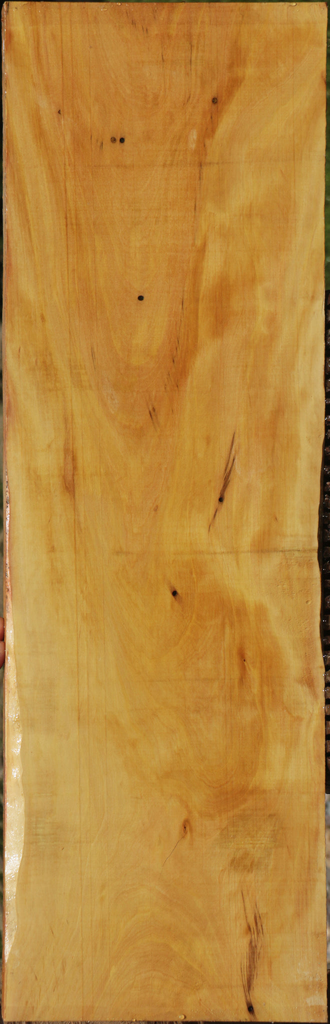 Kiln dried and surfaced on two sides, this beautiful South American Kirandy has fine woodworking properties. There may be an occasional surface or end check. Boards over 36" may have a slight bow or twist up to 1/8" but they are generally flat. This lesser known hardwood works well and glues satisfactorily. Colors range from vivid yellow to reddish pink streaks and mottled figure. Try this out for your next woodworking project! This piece has worm holes. Please see pictures for details.