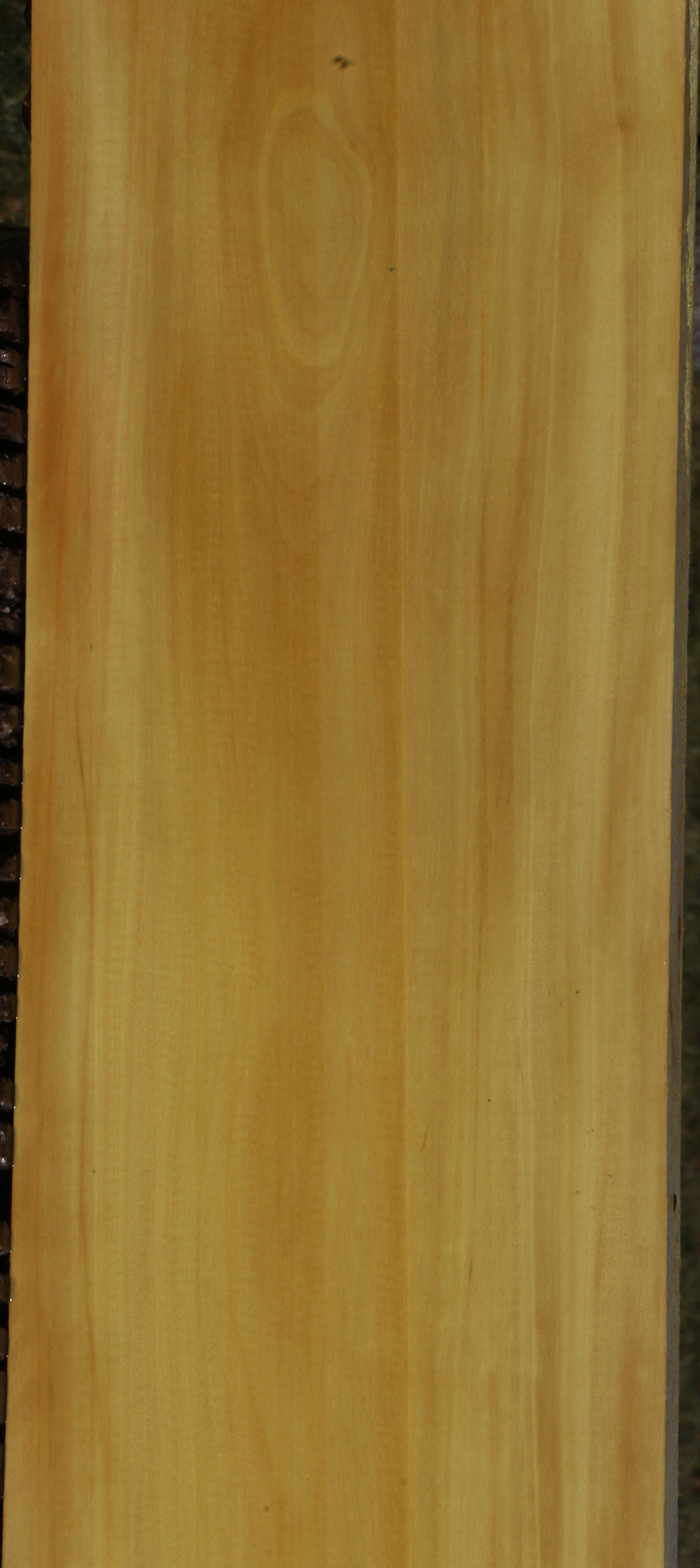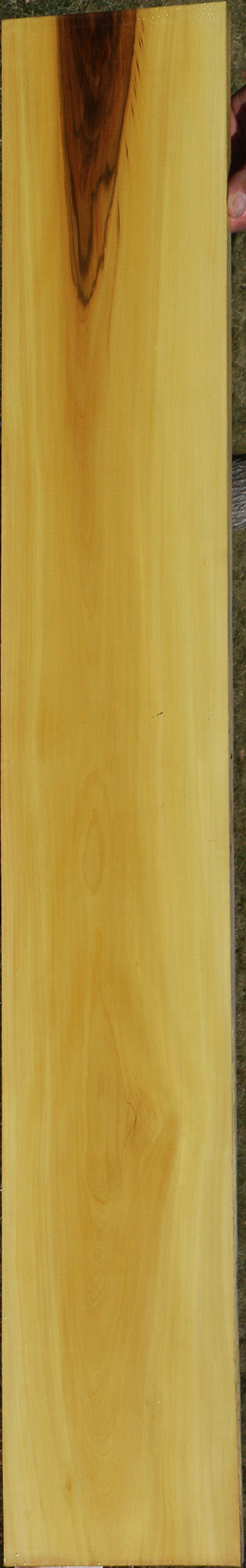 Kiln dried and surfaced on two sides, this beautiful South American Kirandy has fine woodworking properties. There may be an occasional surface or end check. Boards over 36" may have a slight bow or twist up to 1/8" but they are generally flat. This lesser known hardwood works well and glues satisfactorily. Colors range from vivid yellow to reddish pink streaks and mottled figure. Try this out for your next woodworking project! This piece has a partial rough edge. Please see pictures for details.