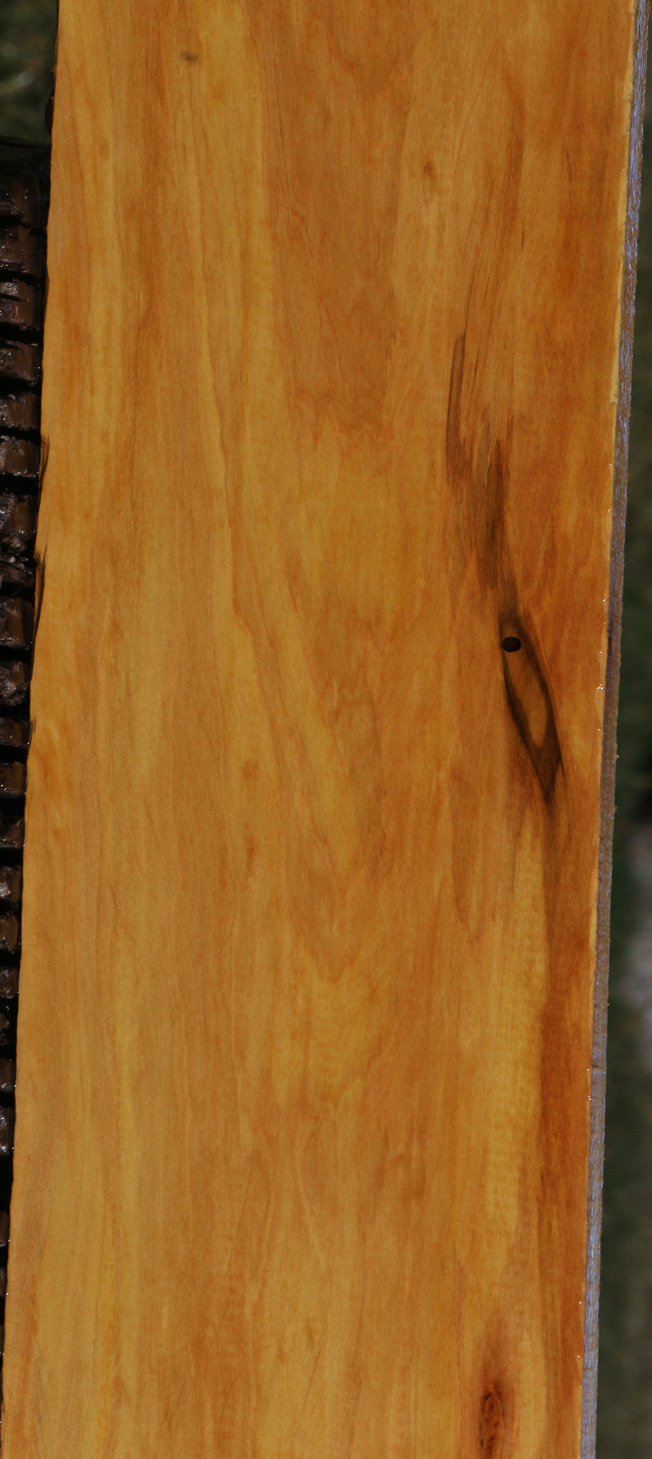 Kiln dried and surfaced on two sides, this beautiful South American Kirandy has fine woodworking properties. There may be an occasional surface or end check. Boards over 36" may have a slight bow or twist up to 1/8" but they are generally flat. This lesser known hardwood works well and glues satisfactorily. Colors range from vivid yellow to reddish pink streaks and mottled figure. Try this out for your next woodworking project! This piece has bug holes and inclusions. Please see pictures for details.