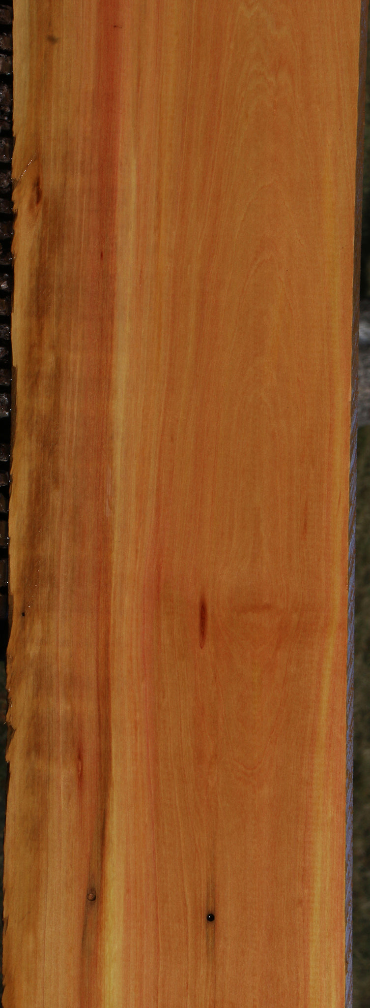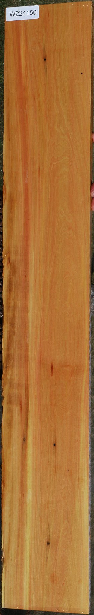 Kiln dried and surfaced on two sides, this beautiful South American Kirandy has fine woodworking properties. There may be an occasional surface or end check. Boards over 36" may have a slight bow or twist up to 1/8" but they are generally flat. This lesser known hardwood works well and glues satisfactorily. Colors range from vivid yellow to reddish pink streaks and mottled figure. Try this out for your next woodworking project! This piece has bug holes, worm holes, and a partial rough edge. Please see pictures for details.