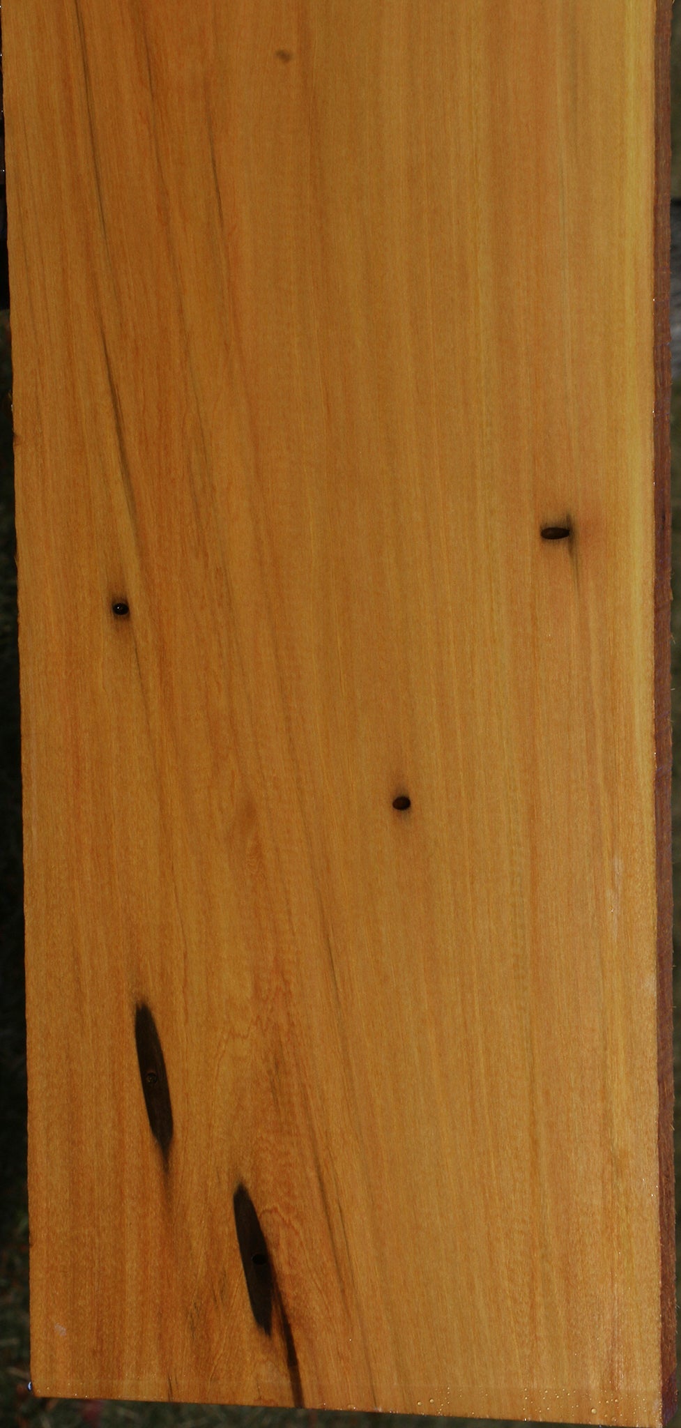 Kiln dried and surfaced on two sides, this beautiful South American Kirandy has fine woodworking properties. There may be an occasional surface or end check. Boards over 36" may have a slight bow or twist up to 1/8" but they are generally flat. This lesser known hardwood works well and glues satisfactorily. Colors range from vivid yellow to reddish pink streaks and mottled figure. Try this out for your next woodworking project! This piece has bug holes and worm holes. Please see pictures for details.