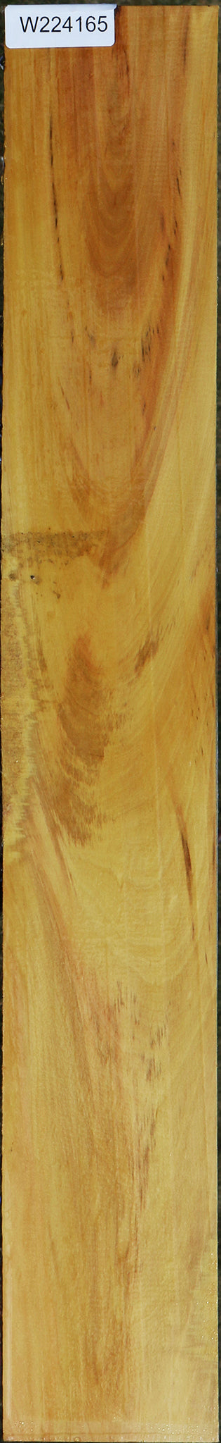 Kiln dried and surfaced on two sides, this beautiful South American Kirandy has fine woodworking properties. There may be an occasional surface or end check. Boards over 36" may have a slight bow or twist up to 1/8" but they are generally flat. This lesser known hardwood works well and glues satisfactorily. Colors range from vivid yellow to reddish pink streaks and mottled figure. Try this out for your next woodworking project! This piece has bug holes, checks, and planer skip. Please see pictures for details.