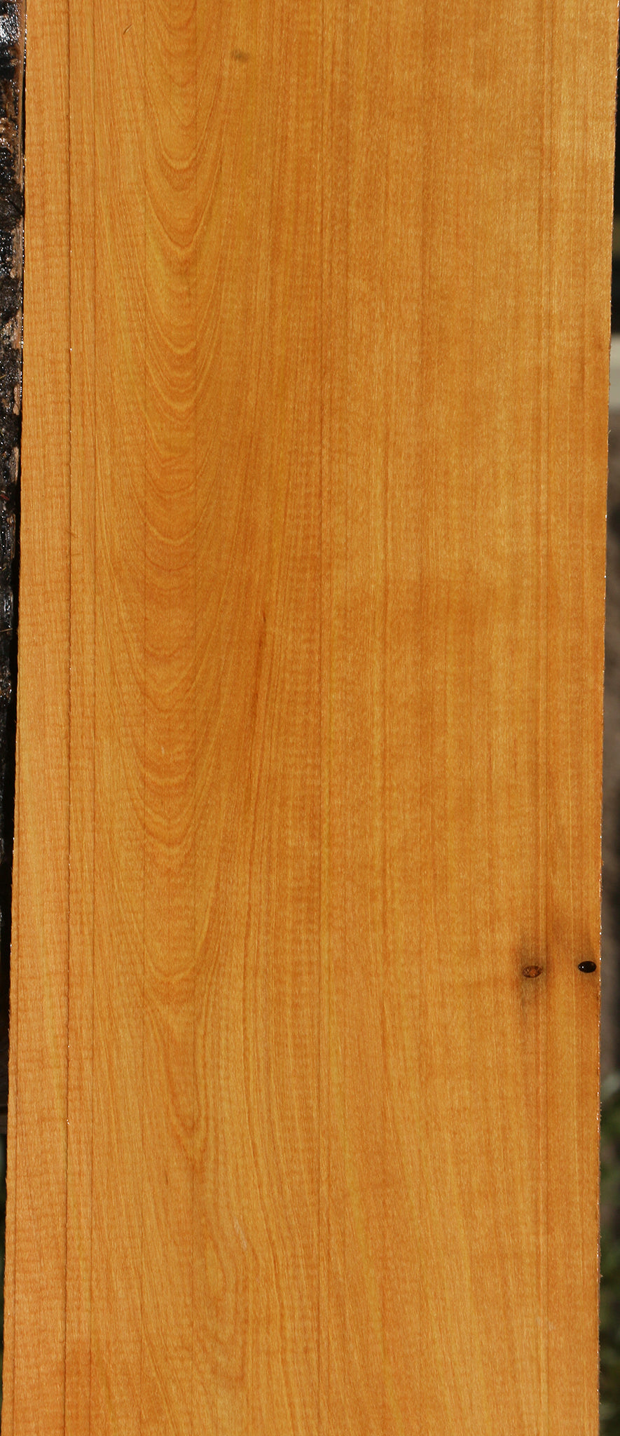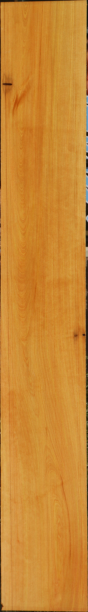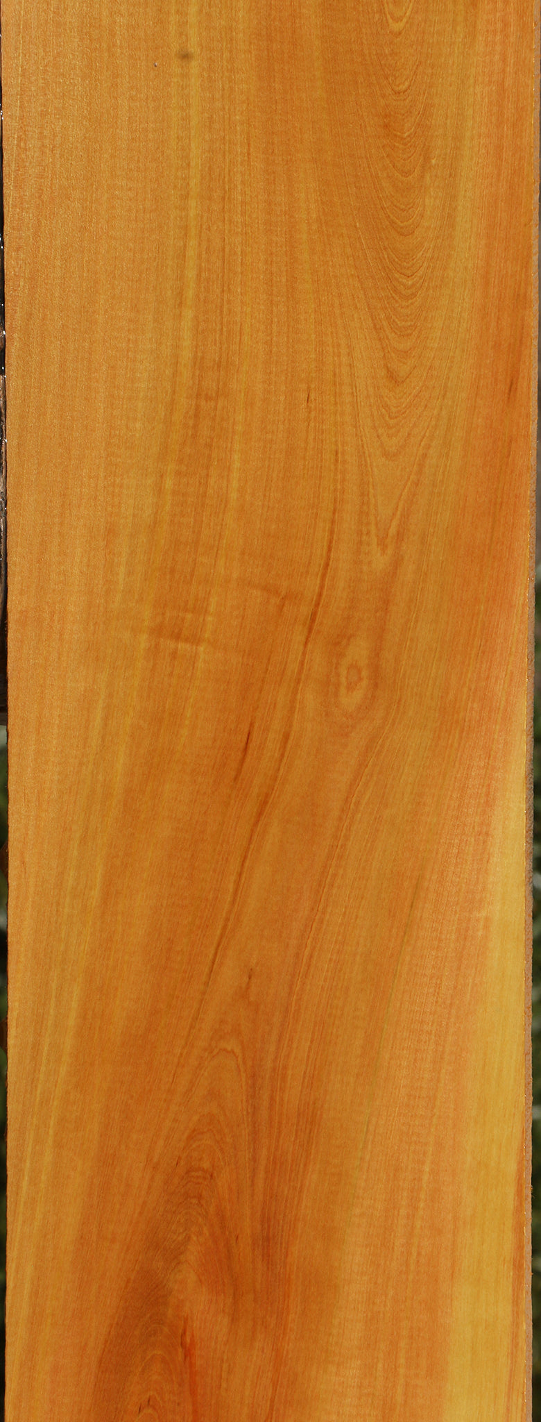 Kiln dried and surfaced on two sides, this beautiful South American Kirandy has fine woodworking properties. There may be an occasional surface or end check. Boards over 36" may have a slight bow or twist up to 1/8" but they are generally flat. This lesser known hardwood works well and glues satisfactorily. Colors range from vivid yellow to reddish pink streaks and mottled figure. Try this out for your next woodworking project! This piece has worm holes. Please see pictures for details.